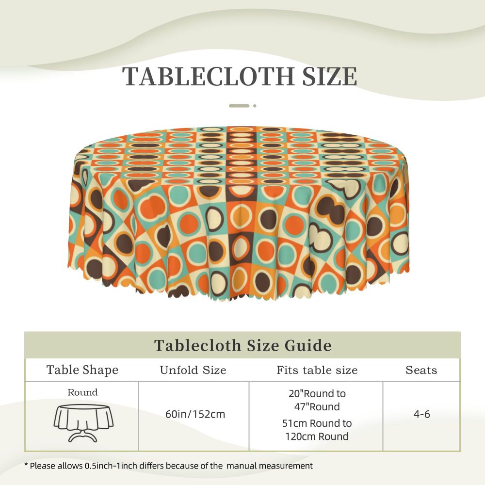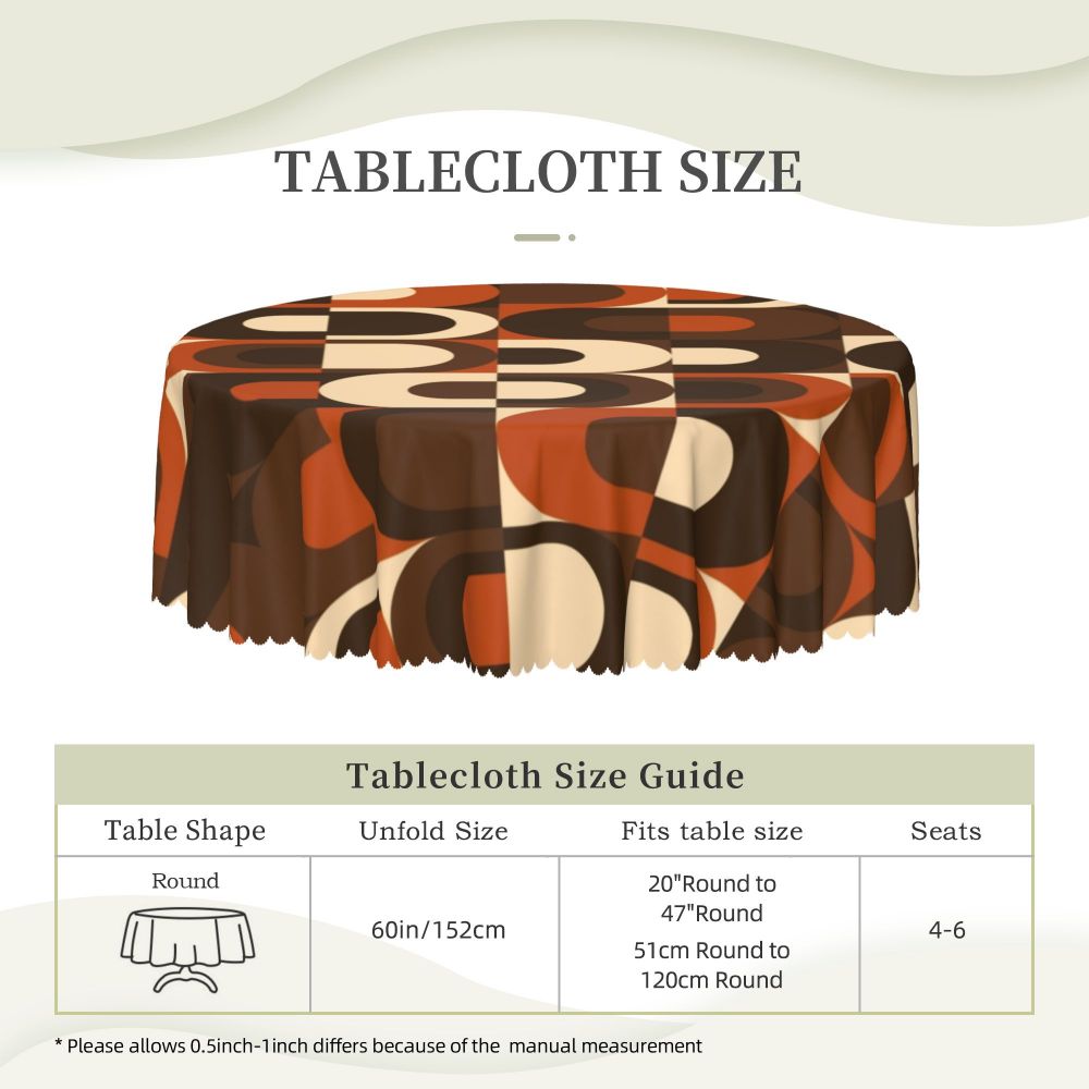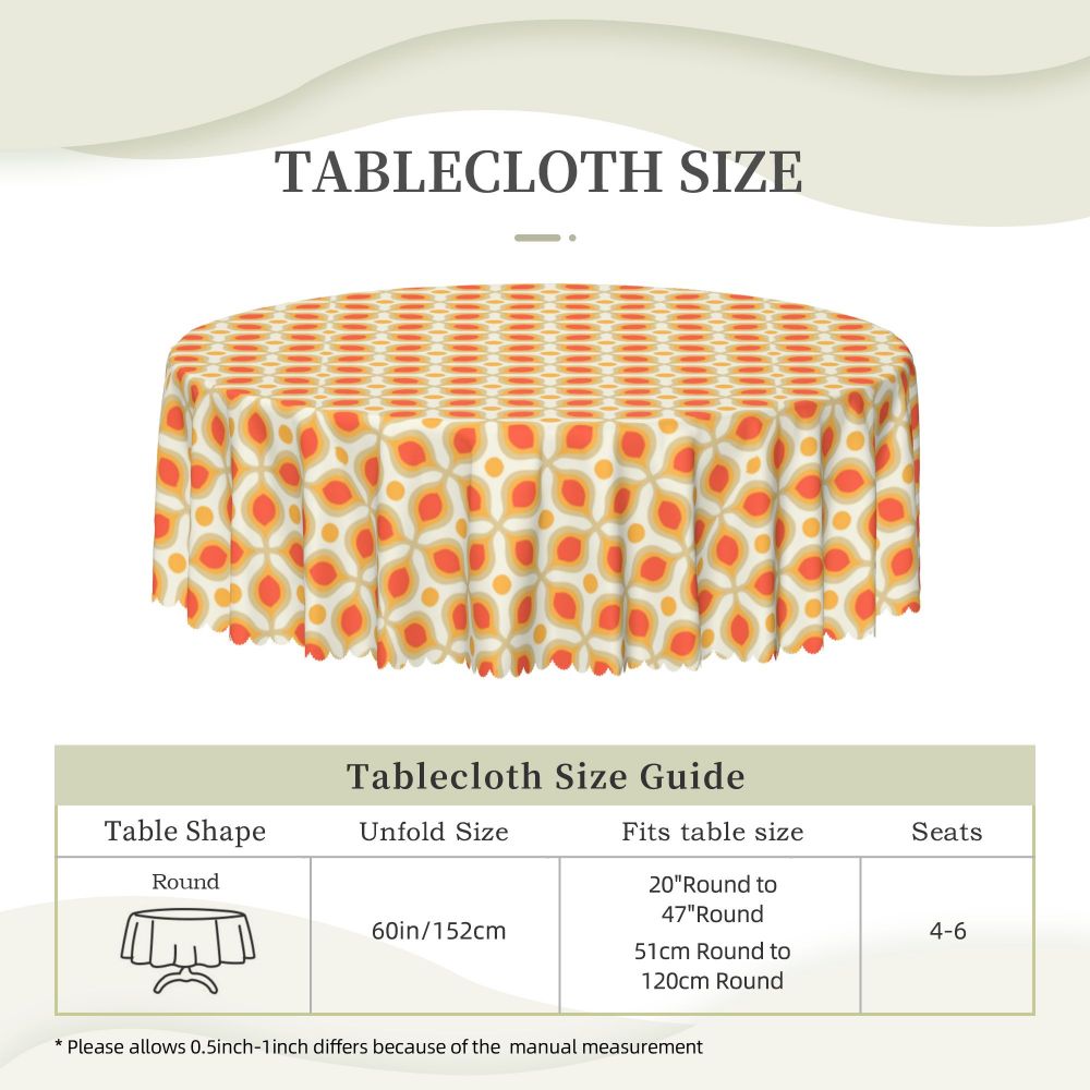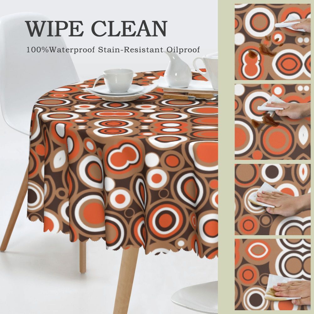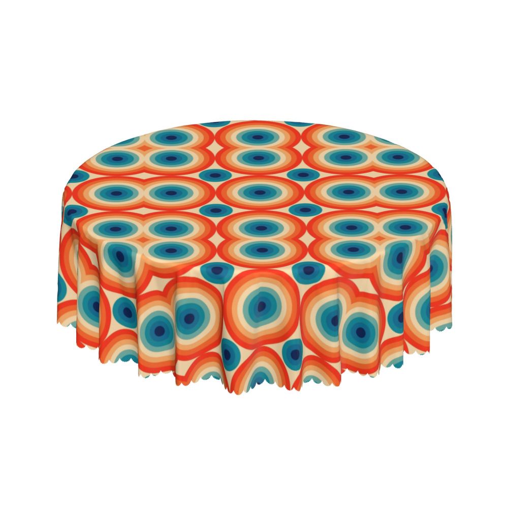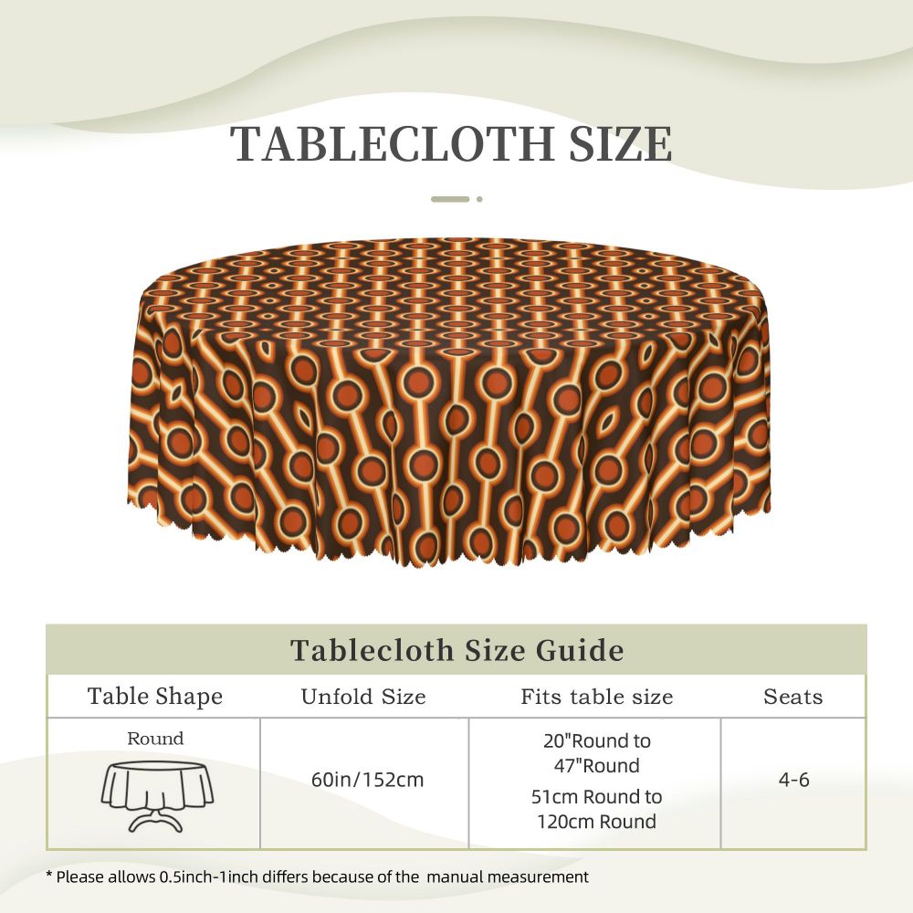 Capa de mesa para jantar de cozinha, padrão anos 70, retro, tons laranja e marrom, redonda, anos 70
