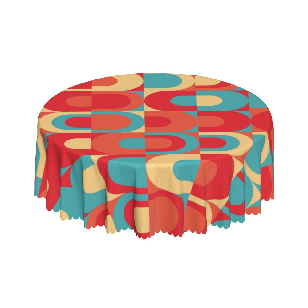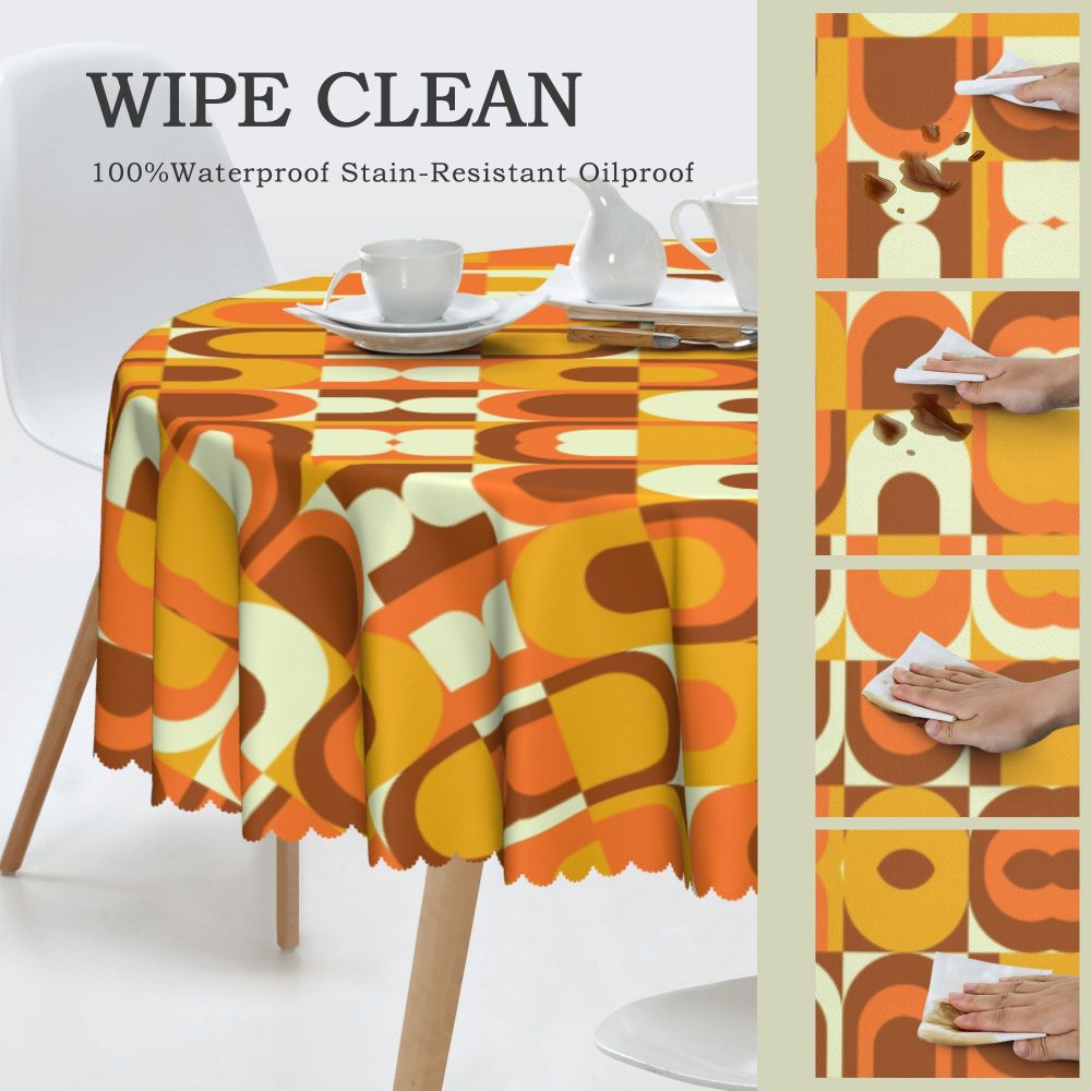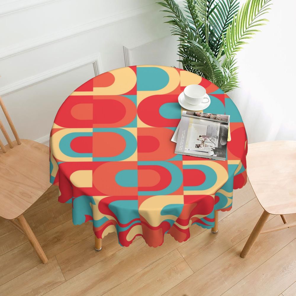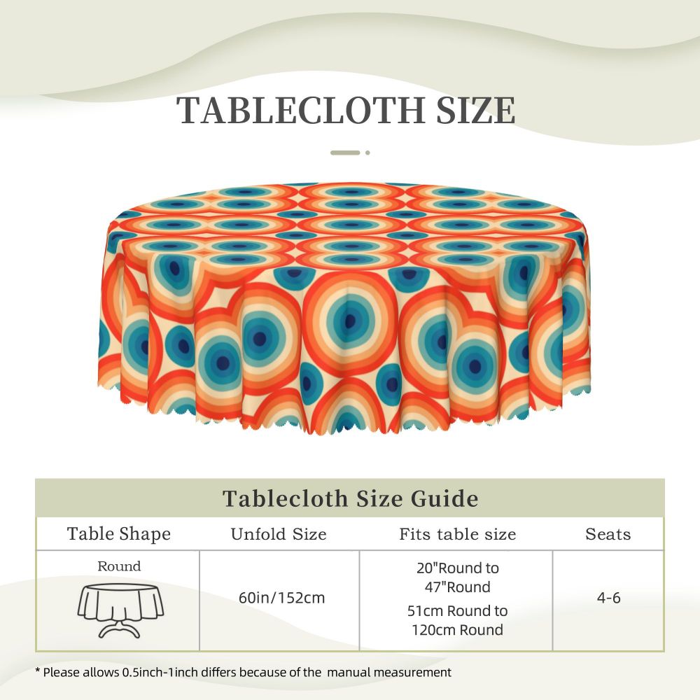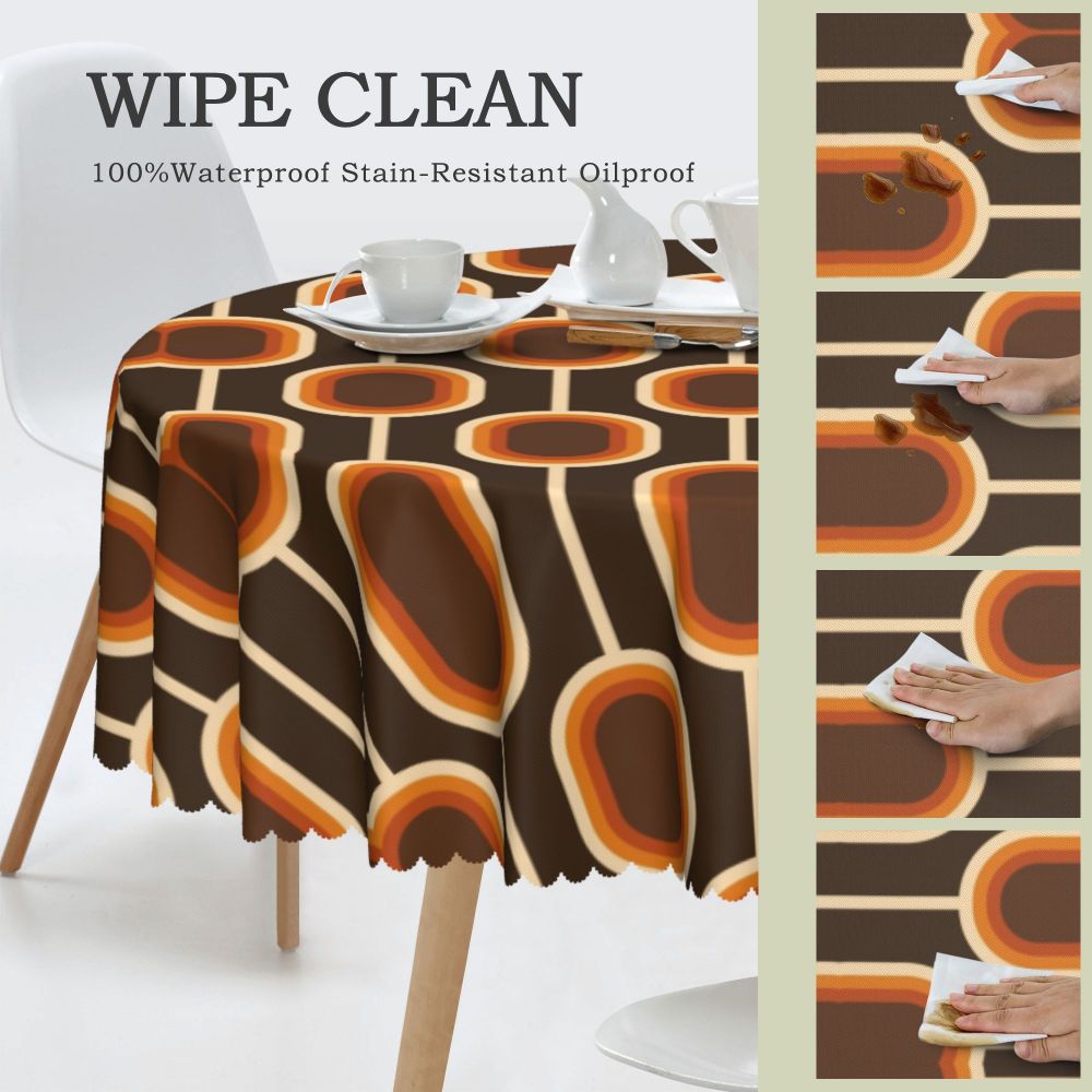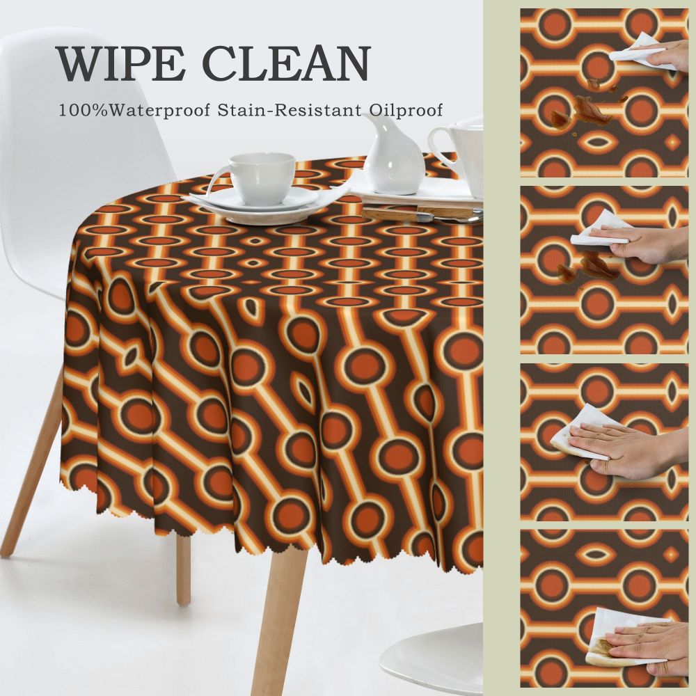 Capa de mesa para jantar de cozinha, padrão anos 70, retro, tons laranja e marrom, redonda, anos 70