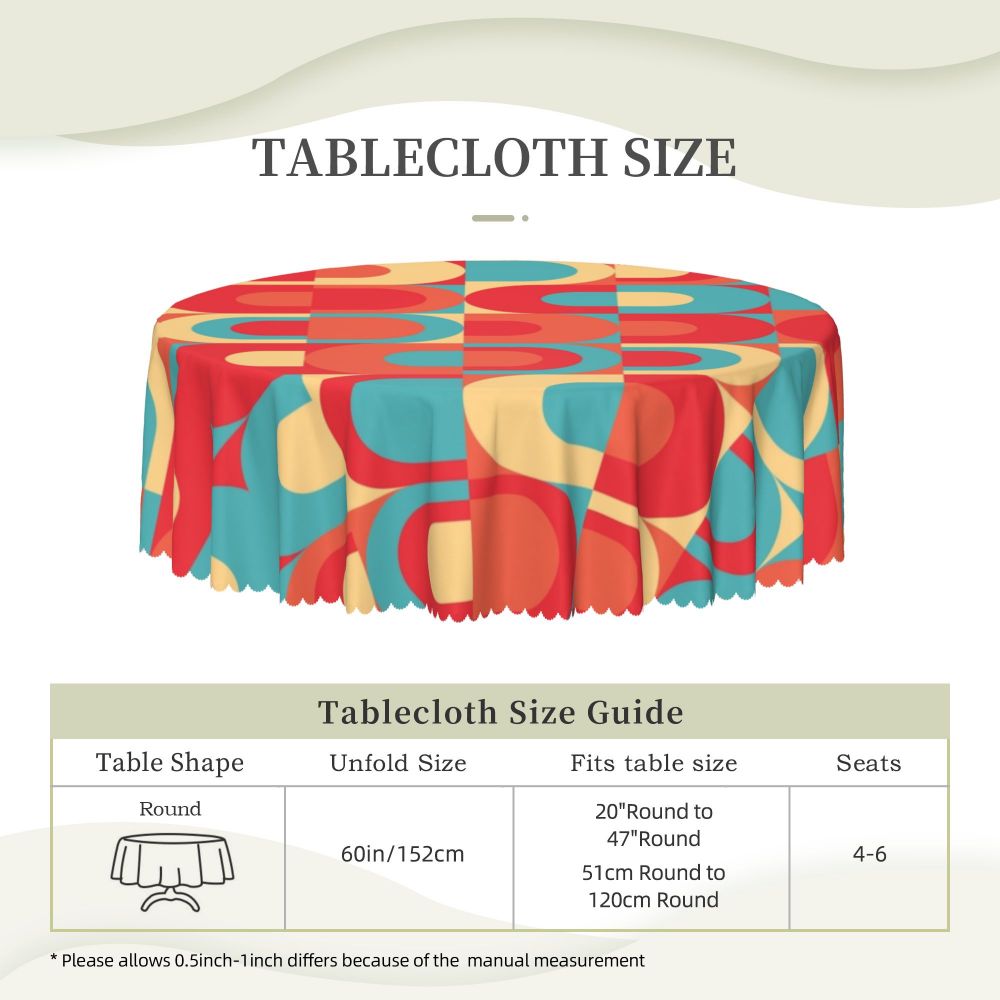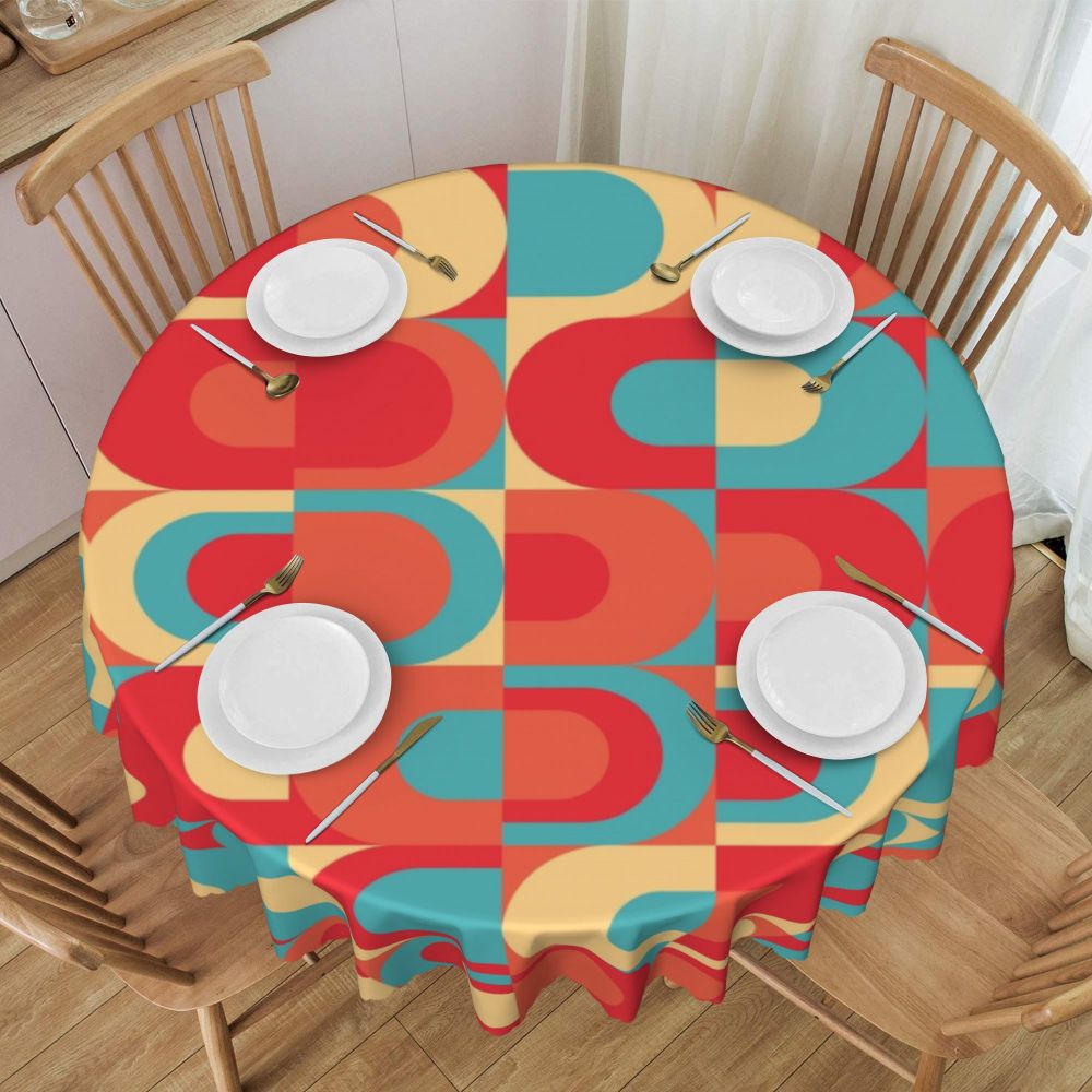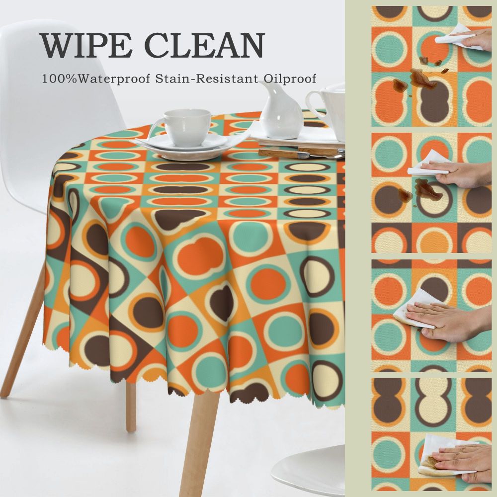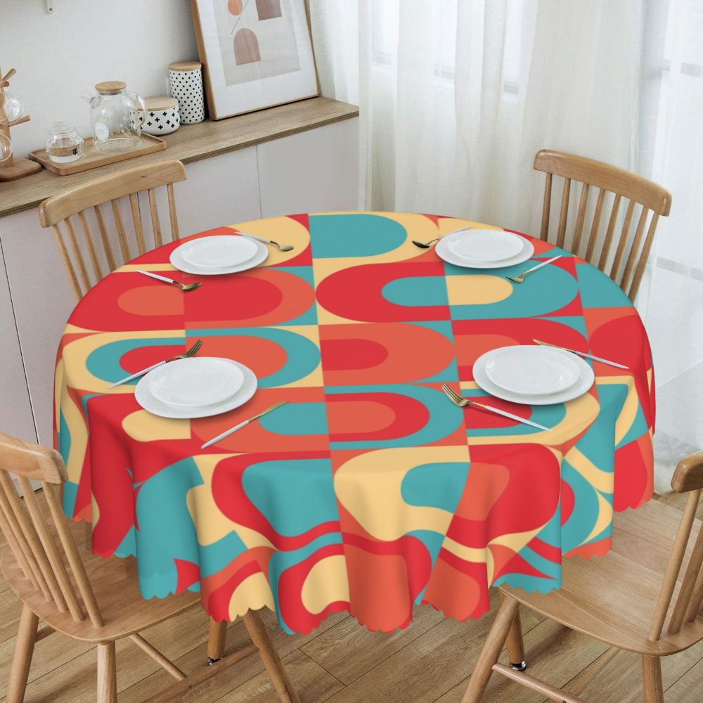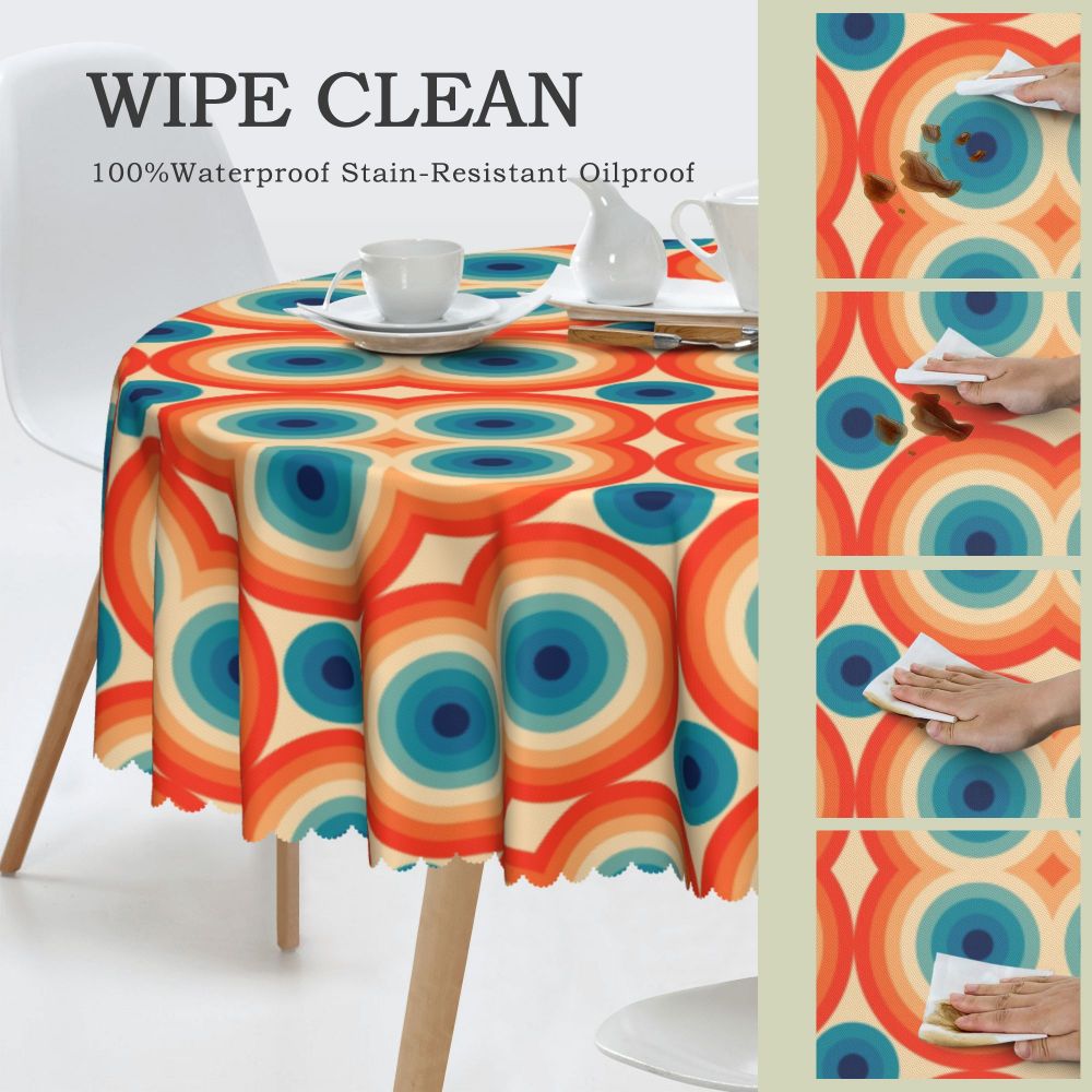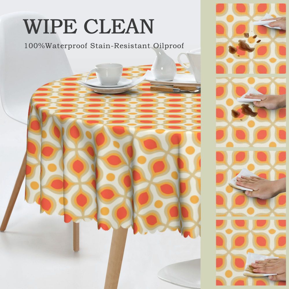 Capa de mesa para jantar de cozinha, padrão anos 70, retro, tons laranja e marrom, redonda, anos 70