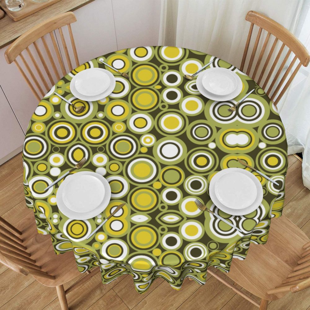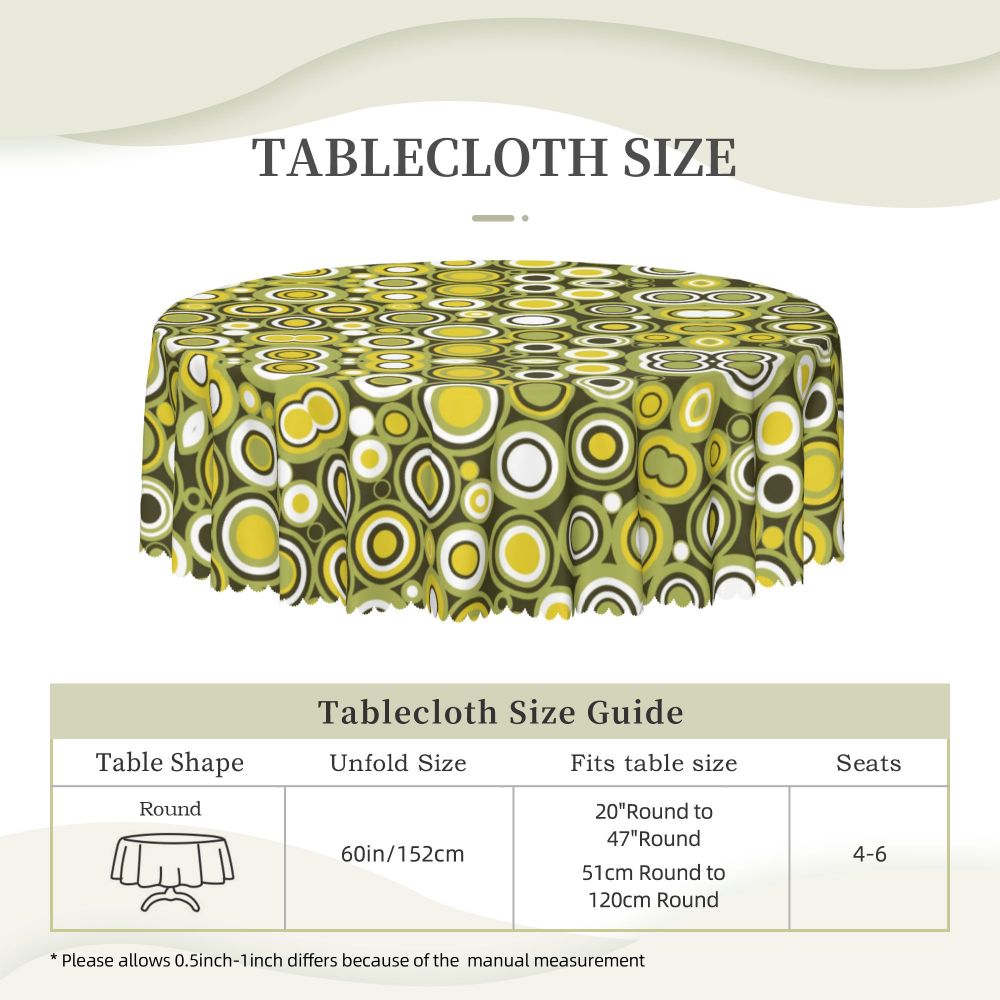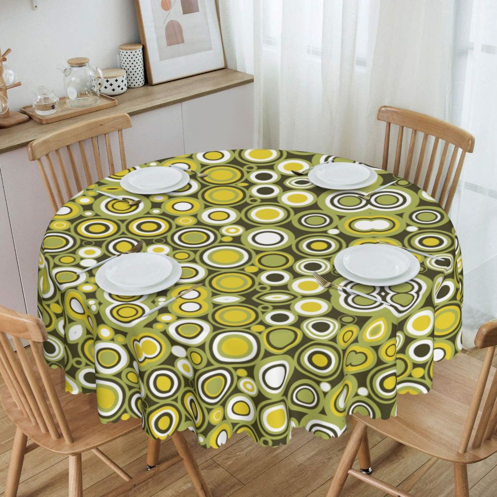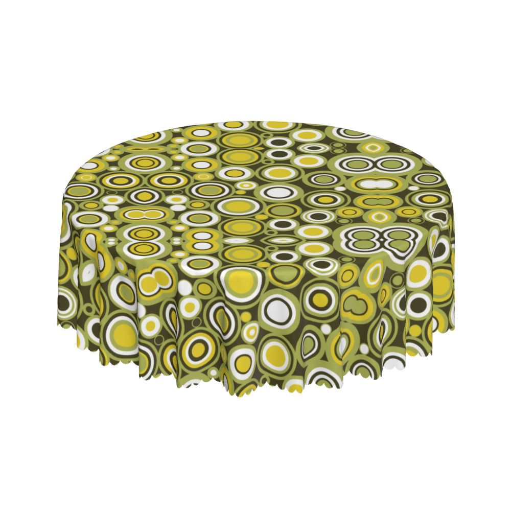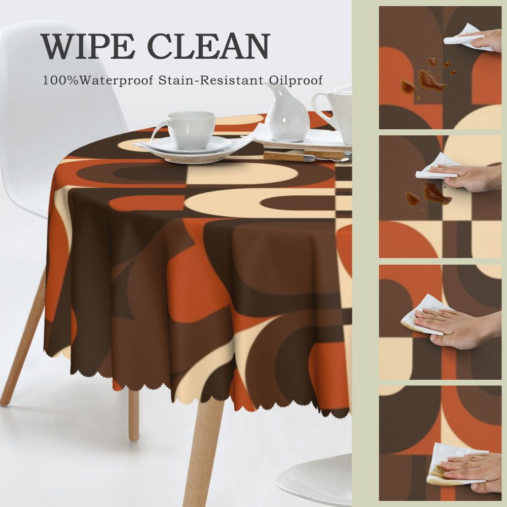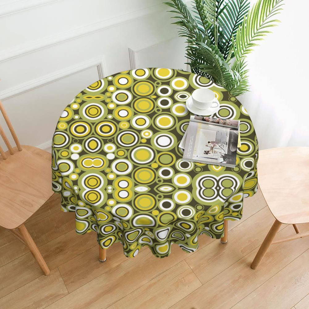 Capa de mesa para jantar de cozinha, padrão anos 70, retro, tons laranja e marrom, redonda, anos 70
