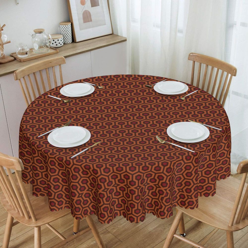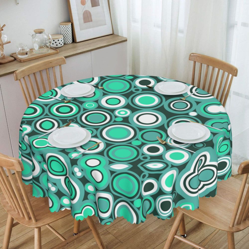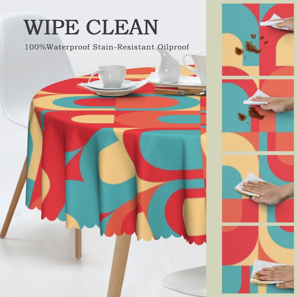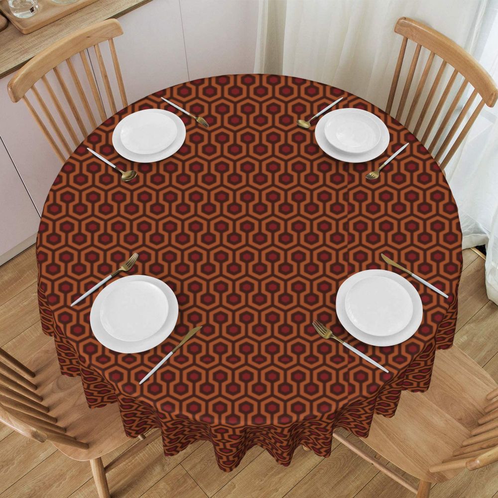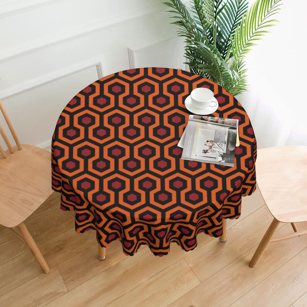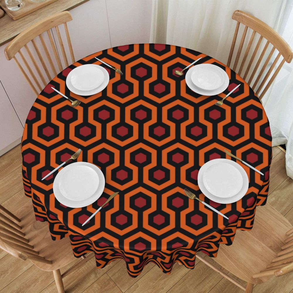 Capa de mesa para jantar de cozinha, padrão anos 70, retro, tons laranja e marrom, redonda, anos 70