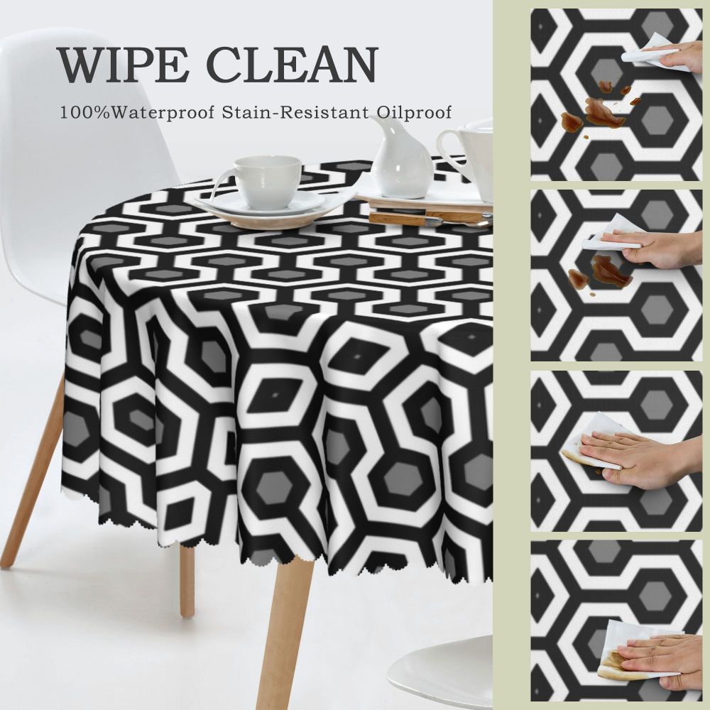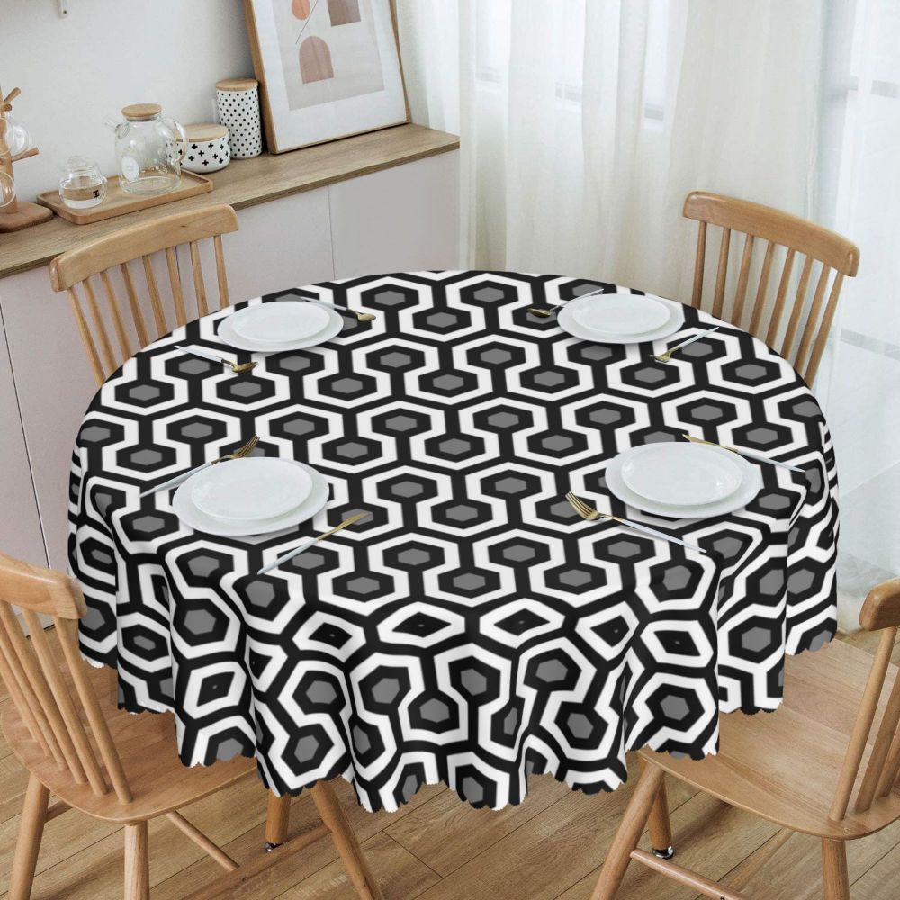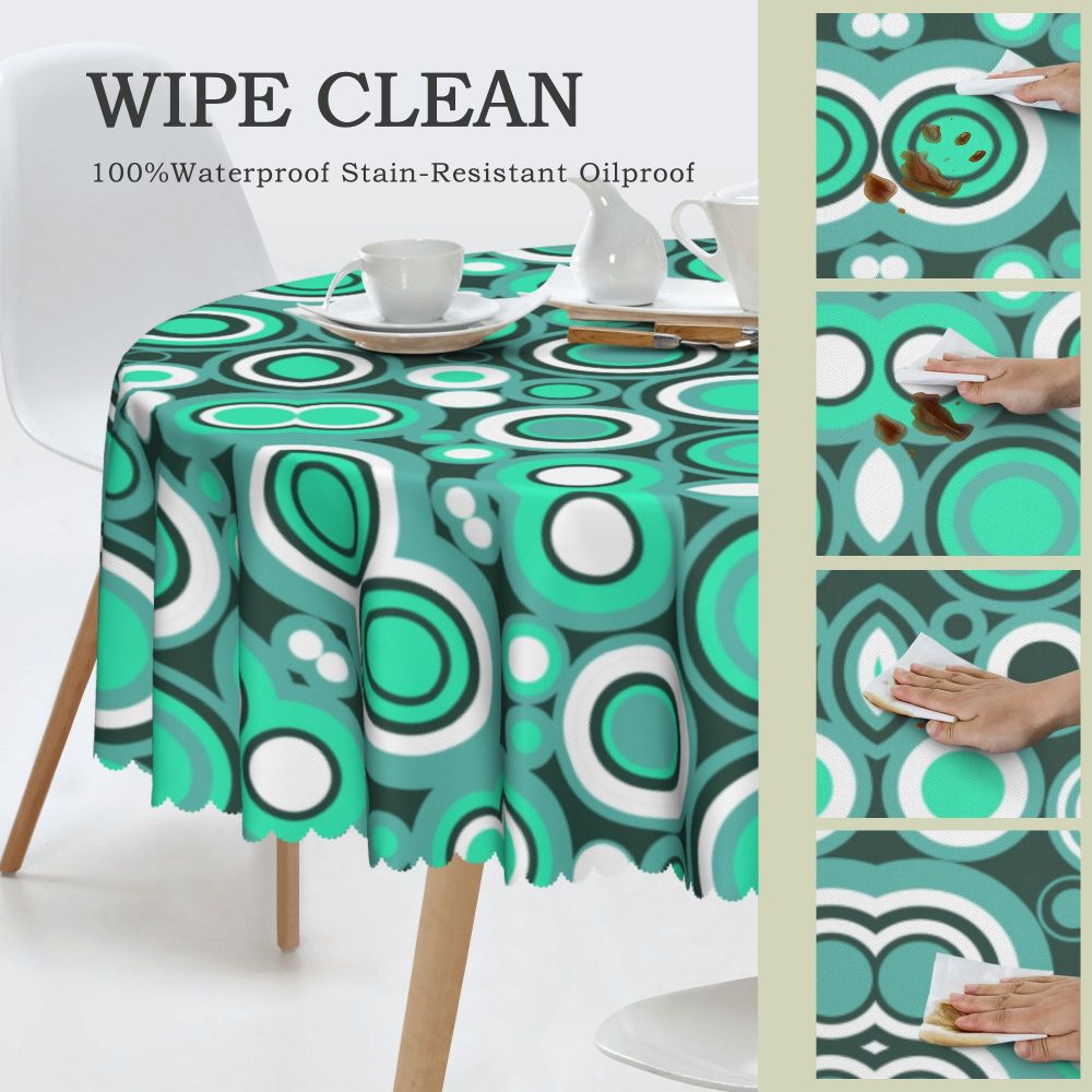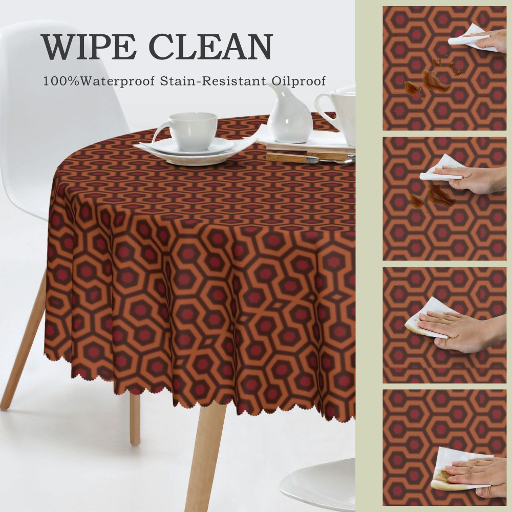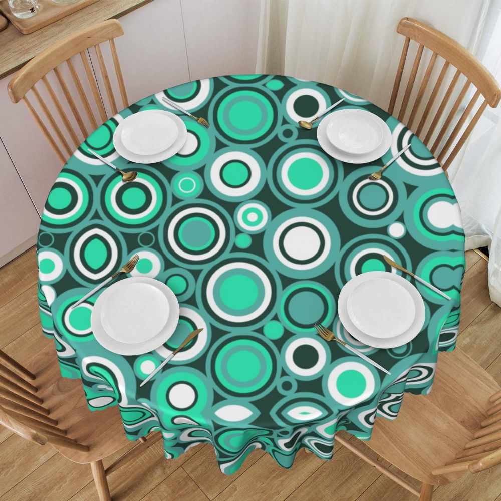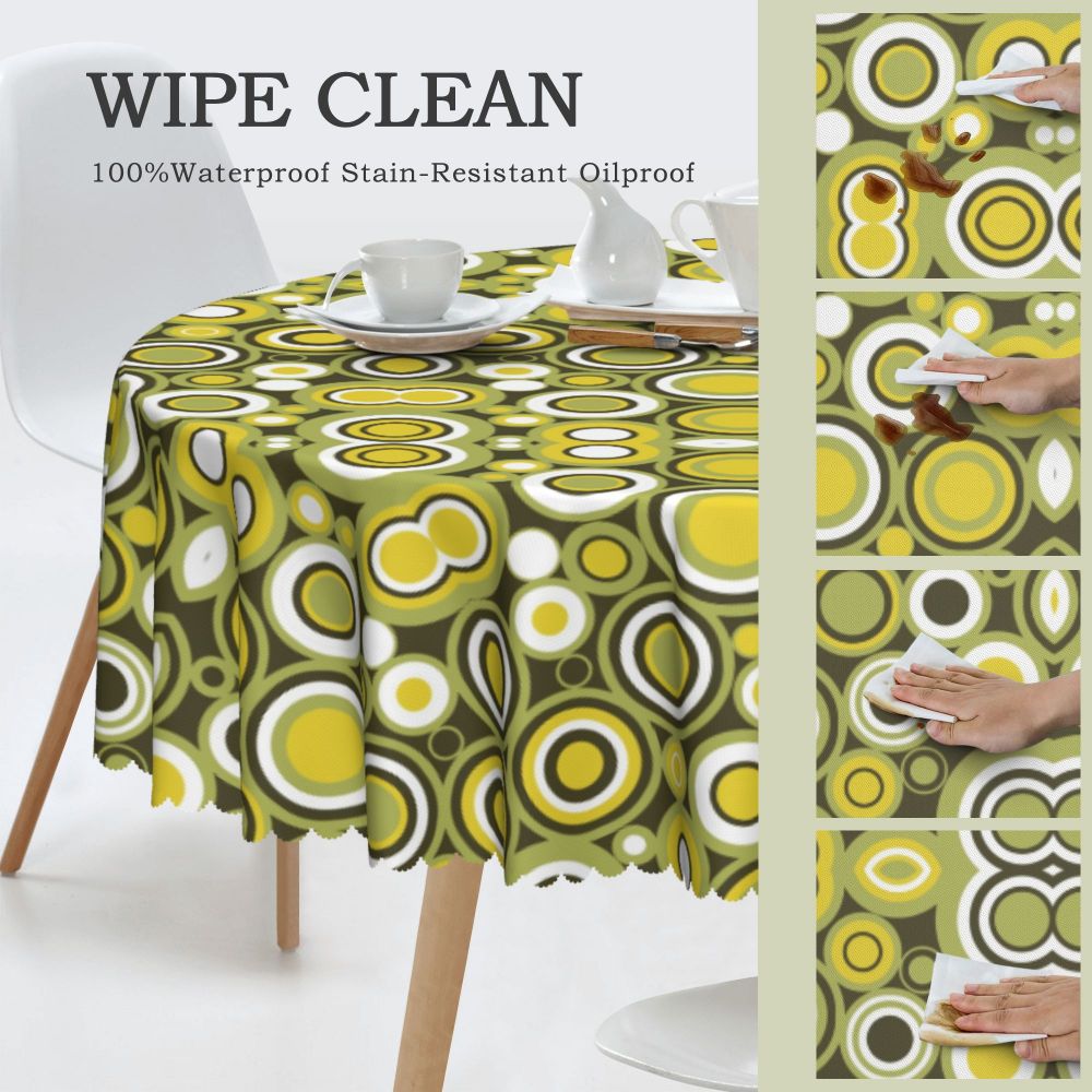 Capa de mesa para jantar de cozinha, padrão anos 70, retro, tons laranja e marrom, redonda, anos 70