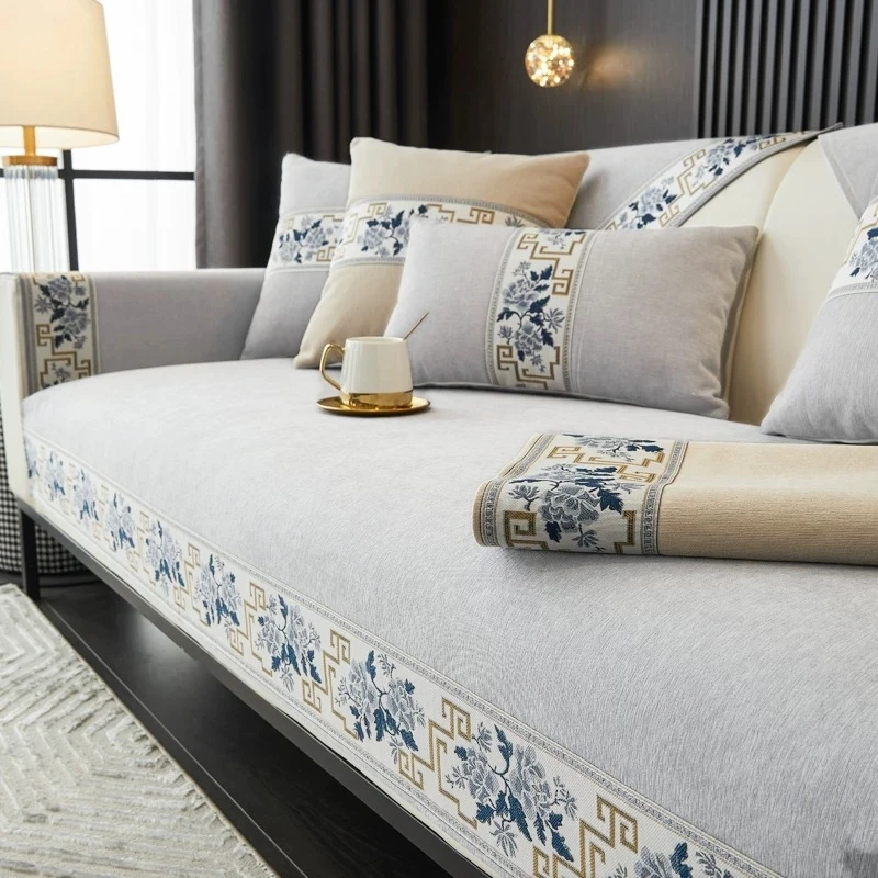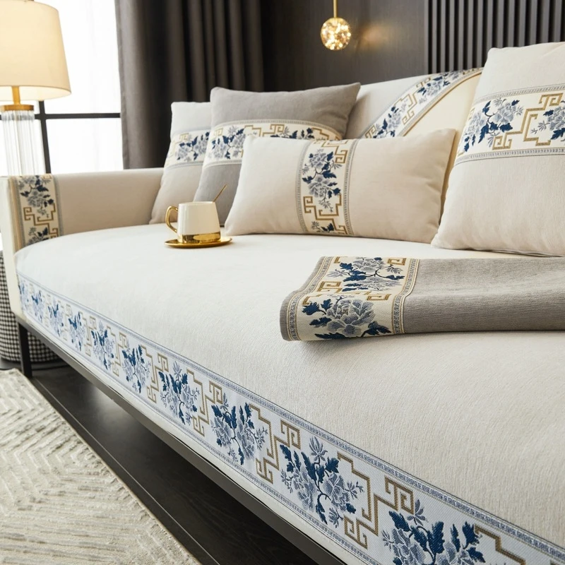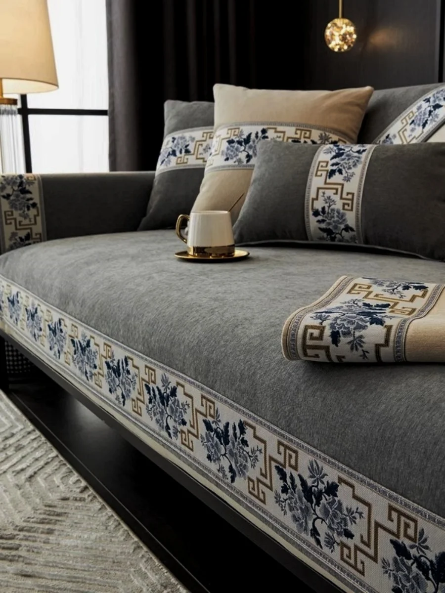 Capa de sofá de chenille sólida, decoração de renda delicada para todas as estações, sala de estar, antiderrapante, capa de assento, toalha de sofá
