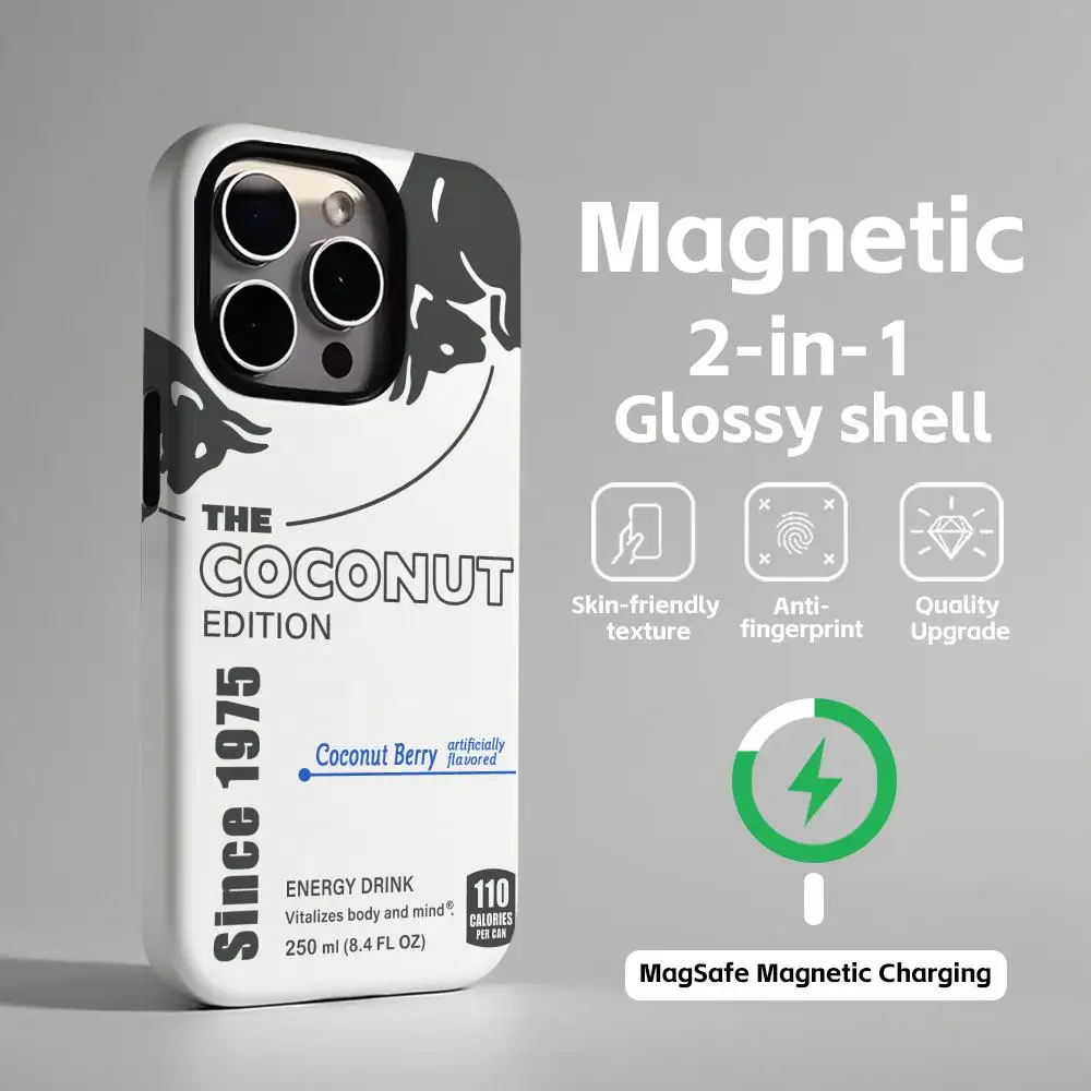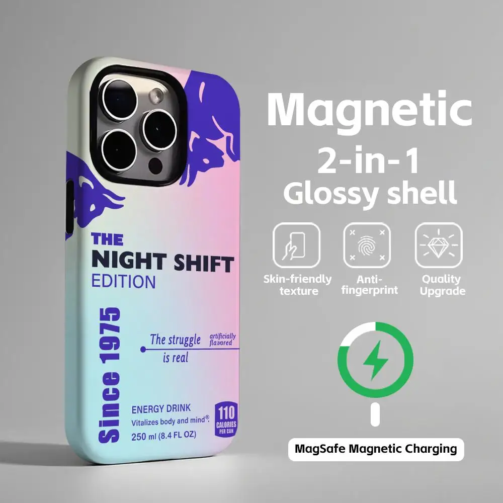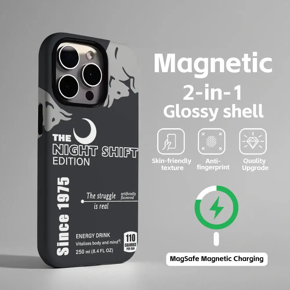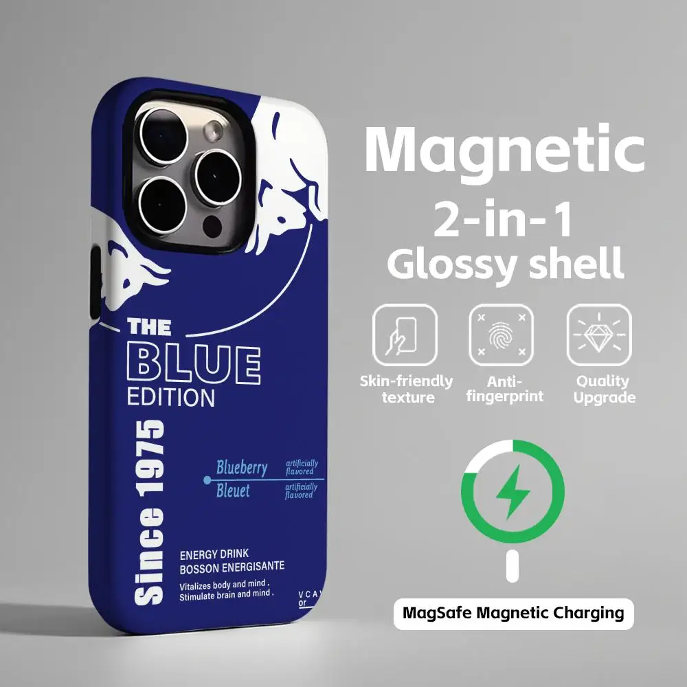 - > Capa de telefone magnética 2 em 1, concha brilhante, novo touro, design elegante para iphone17 16e 16 15 14 13 12 11pro max plus
