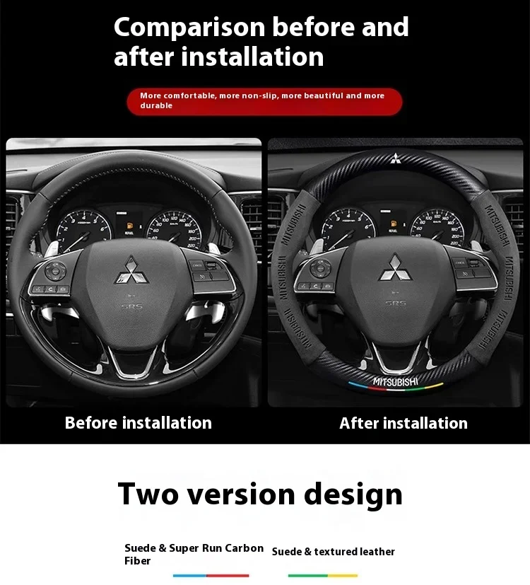 - > Capa de volante de fibra de carbono para carro, para mitsubishi outlander pajero asx colt lancer ex evolução x l200 triton ralliart