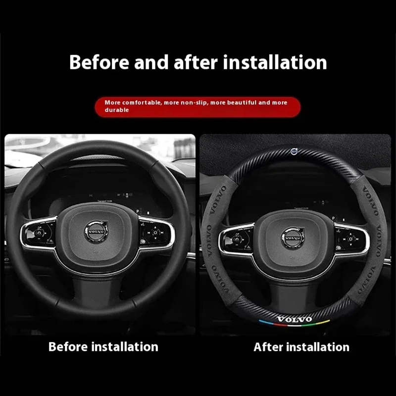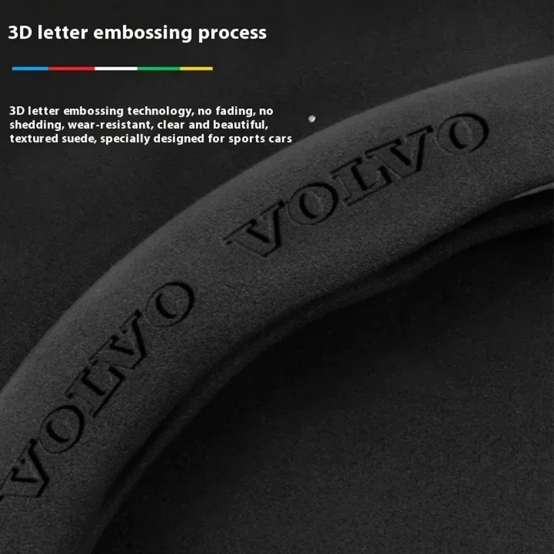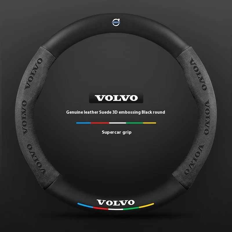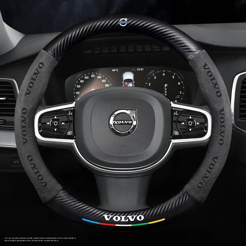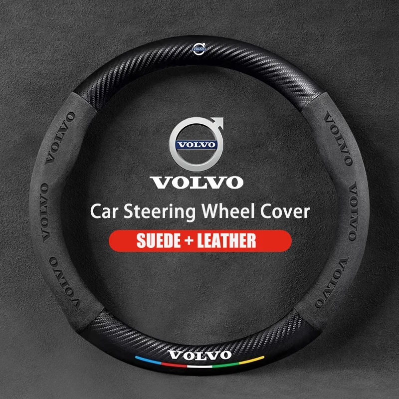 - > Capa de volante do carro para volvo xc40 xc60 xc70 xc90 c30 c40 s60 s80 s90 v40 v60 v90 es90 camurça 38cm anti-deslizamento acessórios do carro