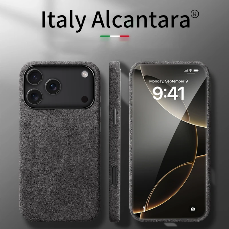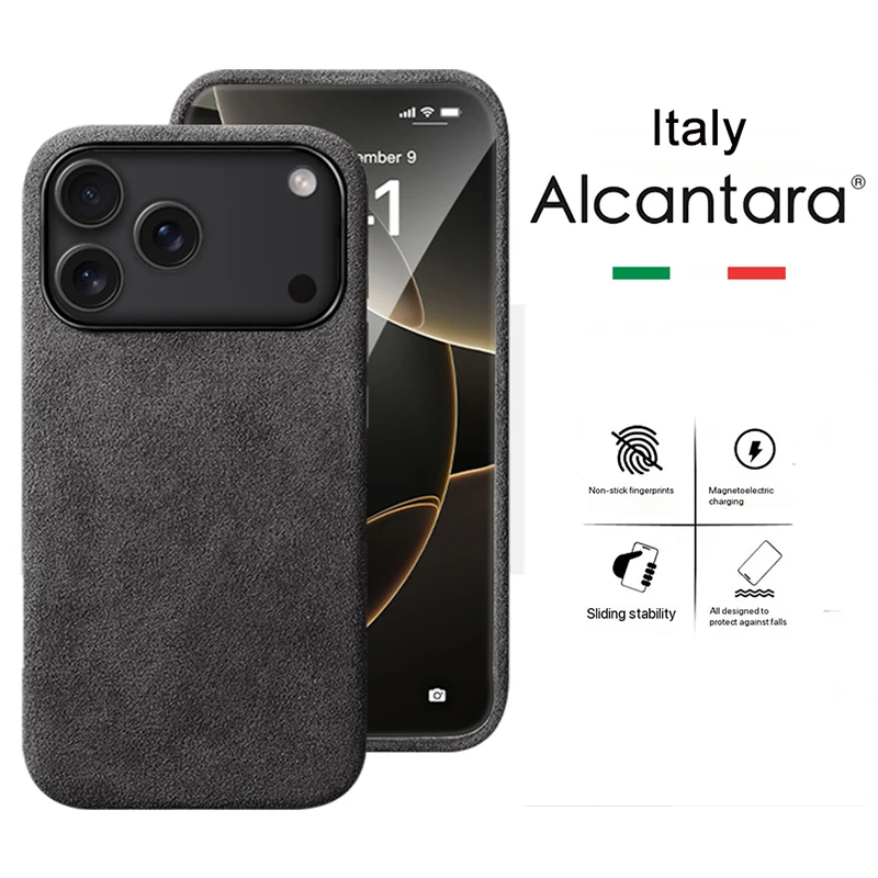 Capa Magnética de Alcantara 100% Italiana para iPhone 17 Pro Max Air Luxury com Magsafe, Capas de Couro para iPhone 17 Pro