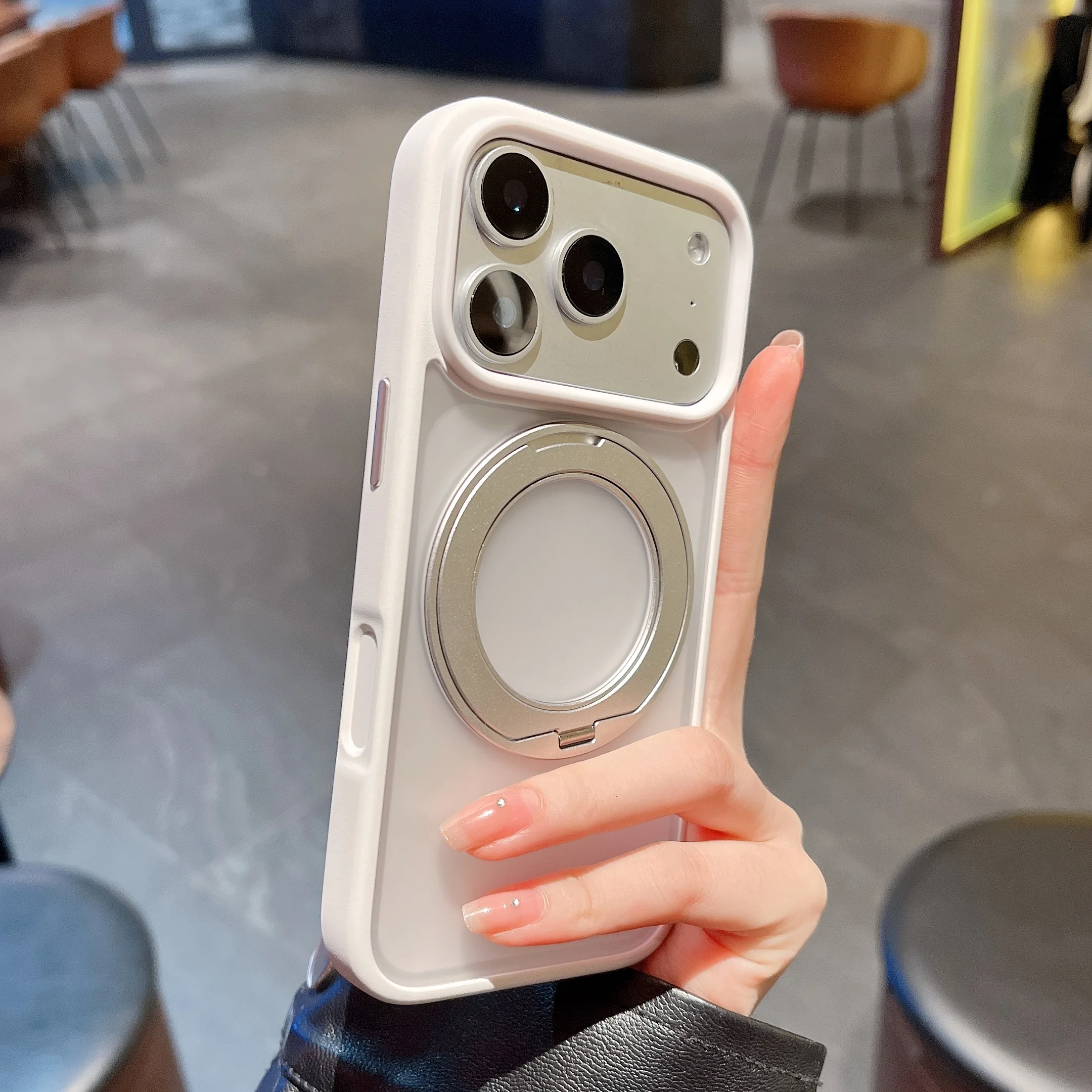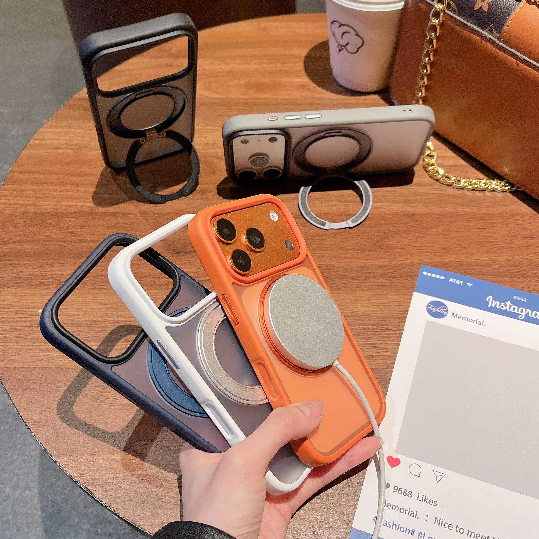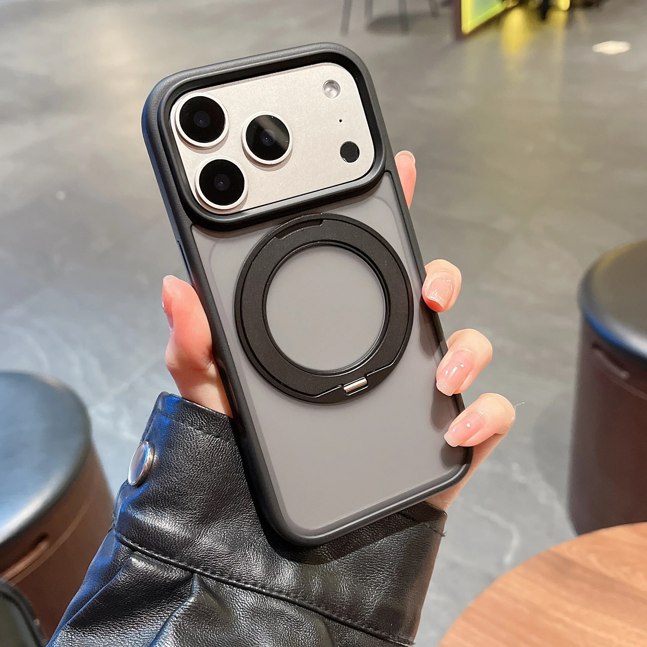 Capa Magnética de Luxo com Rotação 360° para iPhone 17 Pro Max 16 Plus 15 14 13 12 11, Antichoque e Fina, Compatível com Magsafe e Suporte