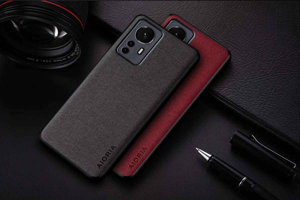 - > Capa para xiaomi 12 12t pro 12x 12 lite ultra coque moda design simples leve cor sólida capa de couro têxtil funda