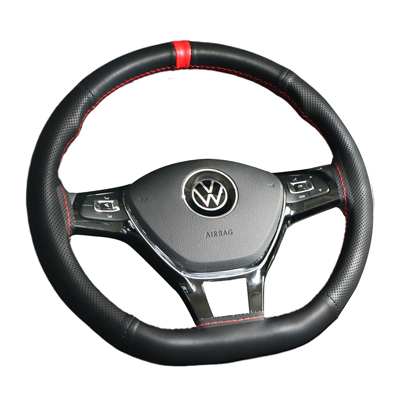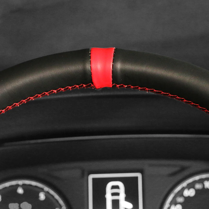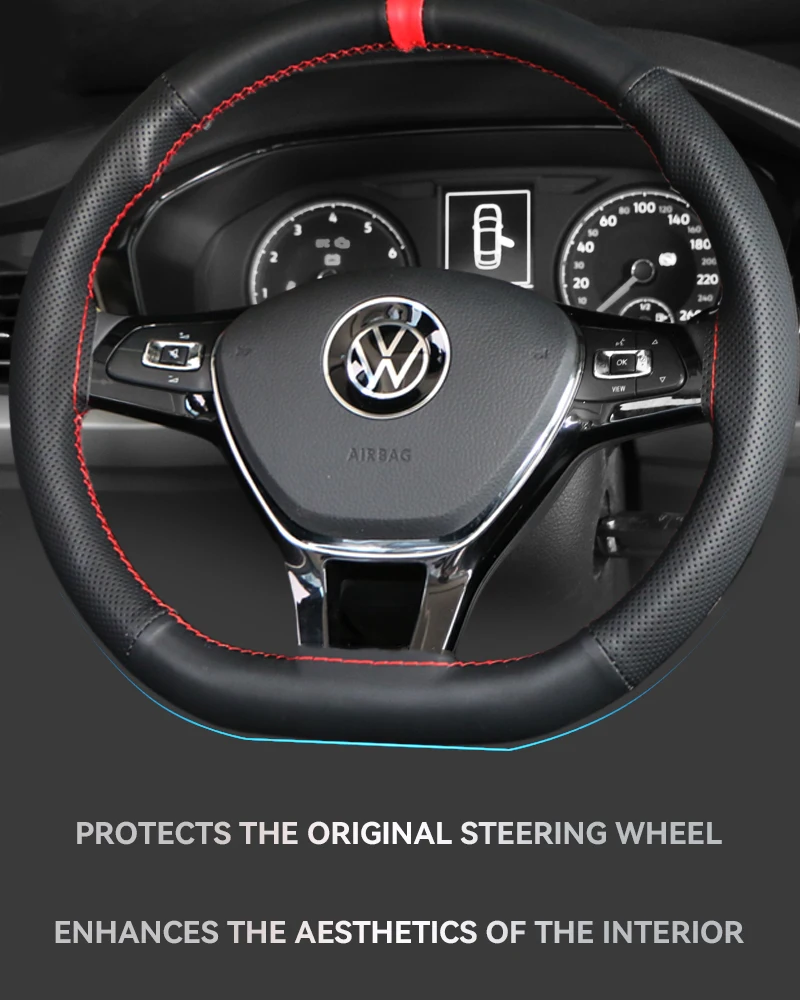 A capa do volante vem na cor preta, que exala um clima sofisticado e moderno.As bordas são adornadas com detalhes de costura vermelha, adicionando um toque de moda e um toque esportivo ao design geral.