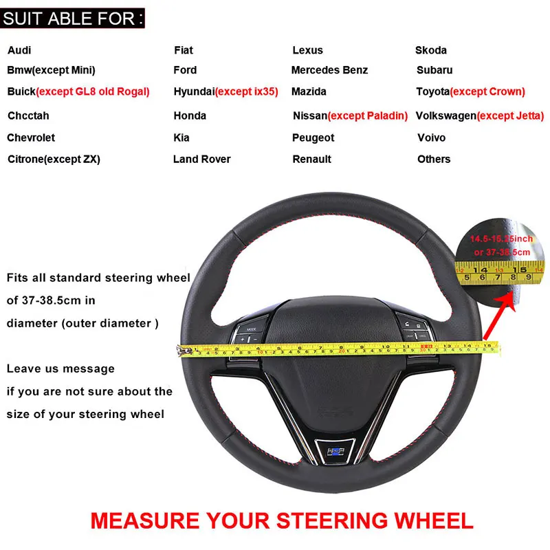 Nossos produtos são adequados para quase todos os Sedans, 97% de veículos comerciais, 95% de SUVs, compre com tranquilidade.Se ainda não tiver certeza, é recomendável medir o diâmetro (diâmetro externo) do volante do seu carro.Nossos produtos são adequados para volantes padrão com um diâmetro de 37,25 a 38,35 cm (15 polegadas).