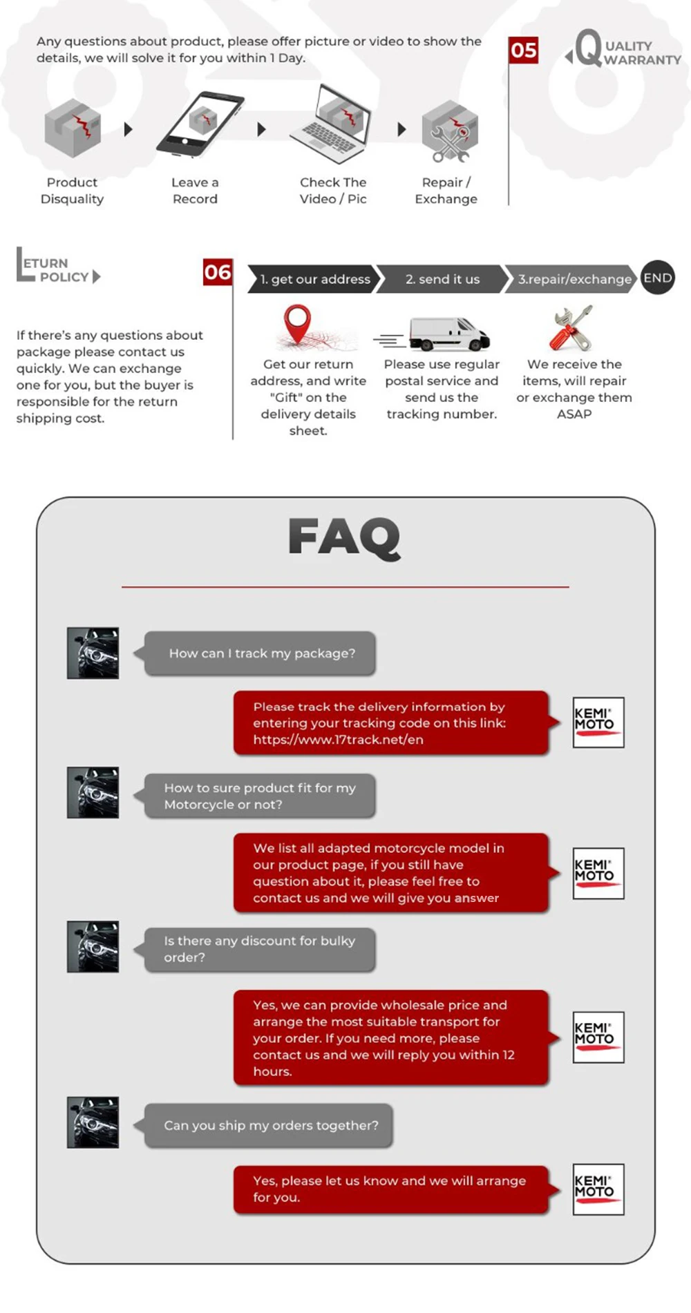 Scope of application: Motorcycle, Motocross, Motorbike, Cruiser, Touring, Chopper, Scooter