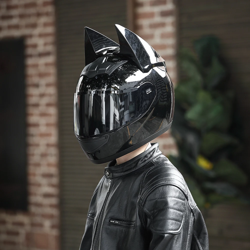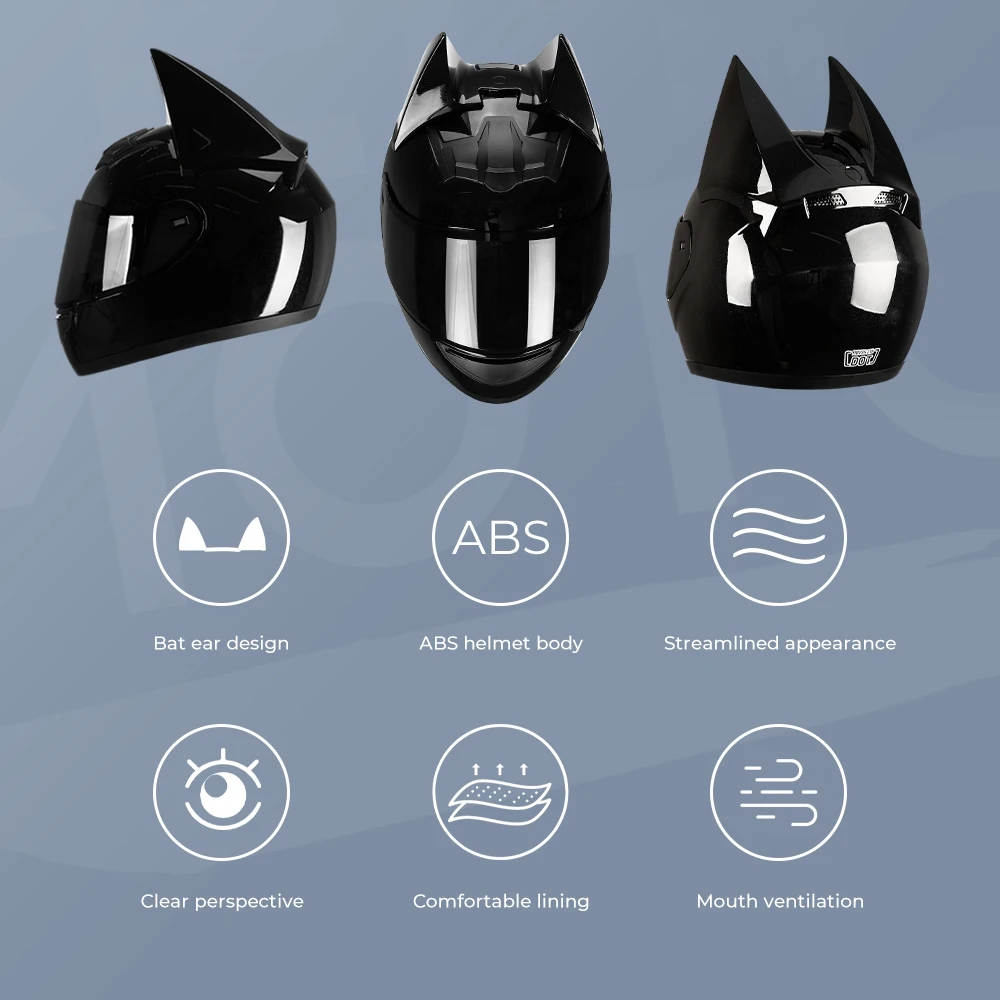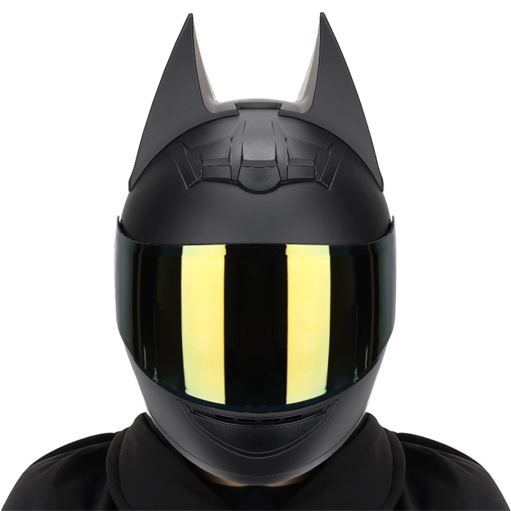 - > Capacete de motocicleta com orelhas de morcego, capacete integral para homem, chifres removíveis, motocross, corrida, motocicleta, certificação dot, capacetes de segurança para moto
