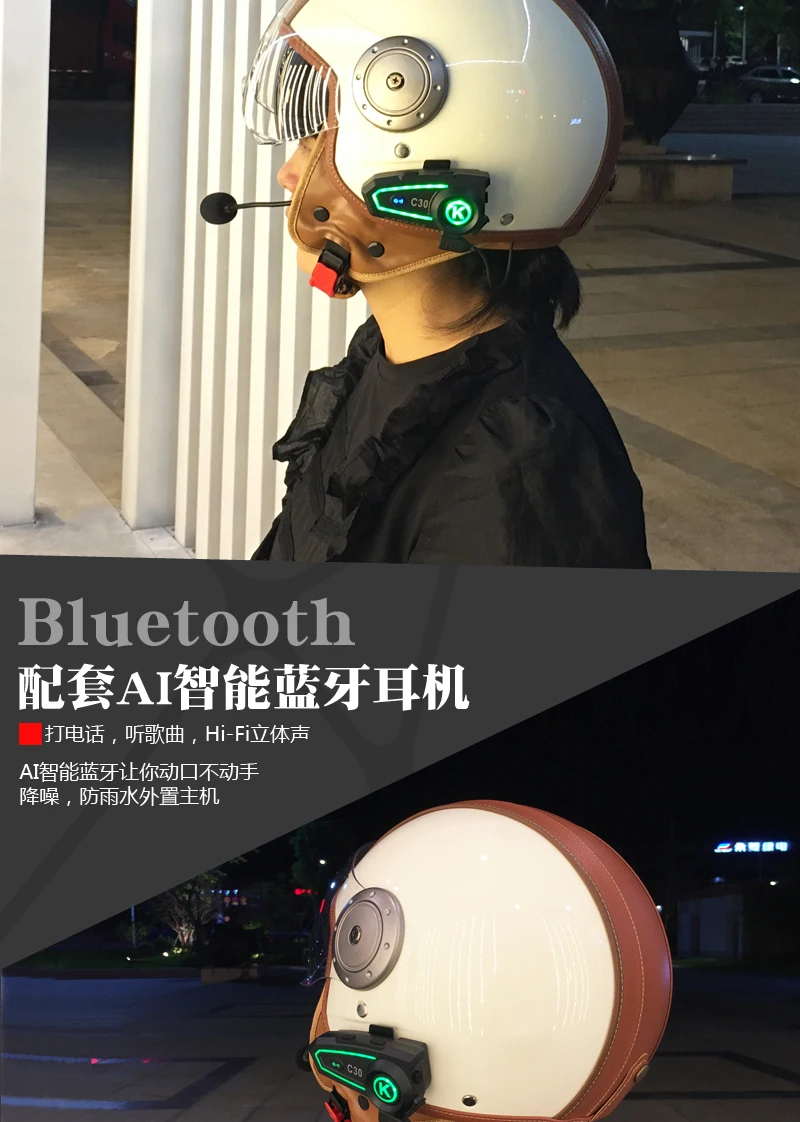 Capacete inteligente para motocicleta elétrica, espelho duplo, bluetooth, unissex, 3c, retrô, protetor térmico de ouvido, meio capacete de três quartos