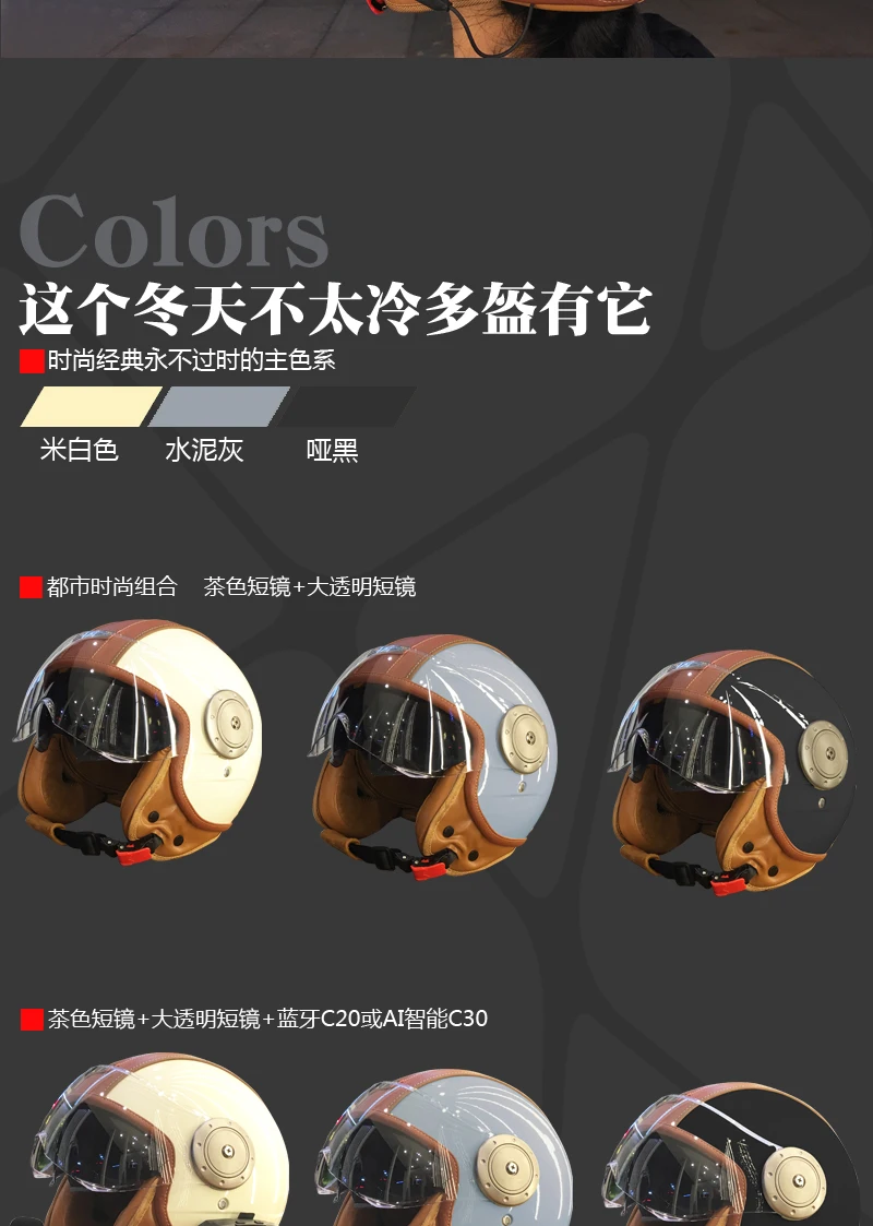 - > Capacete inteligente para motocicleta elétrica, espelho duplo, bluetooth, unissex, 3c, retrô, protetor térmico de ouvido, meio capacete de três quartos
