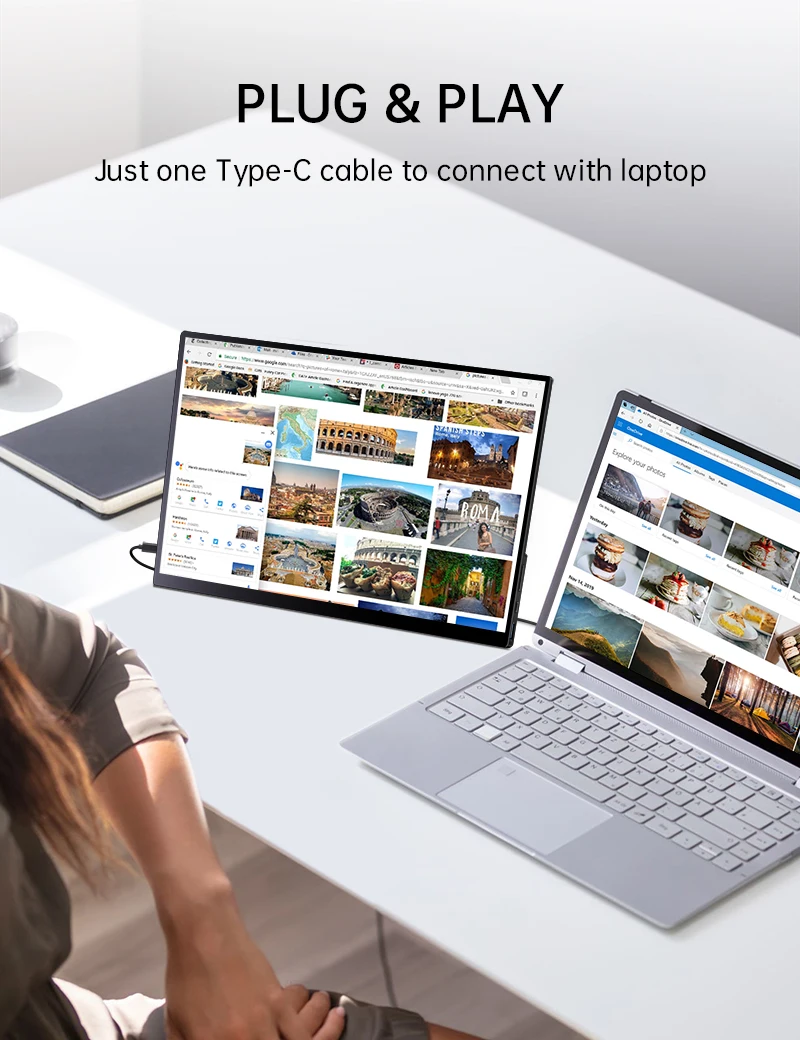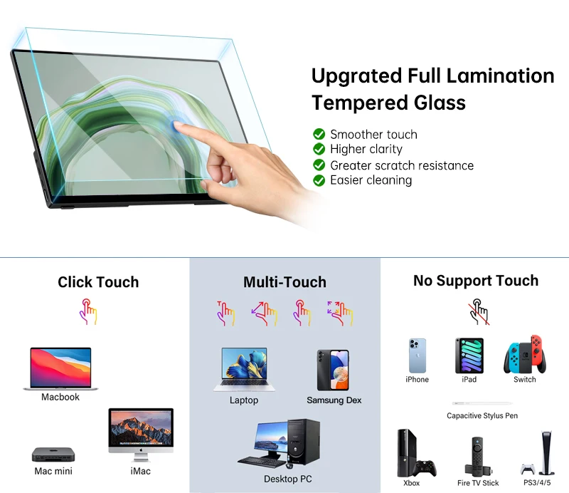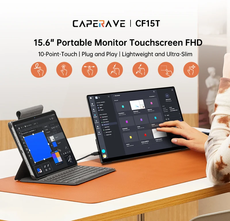 - > Caperave 15.6 ''1080p fhd tela de toque monitor portátil 100% srgb com USB-C hdmi para laptop móvel xbox ps4/5 switch metal cf15t