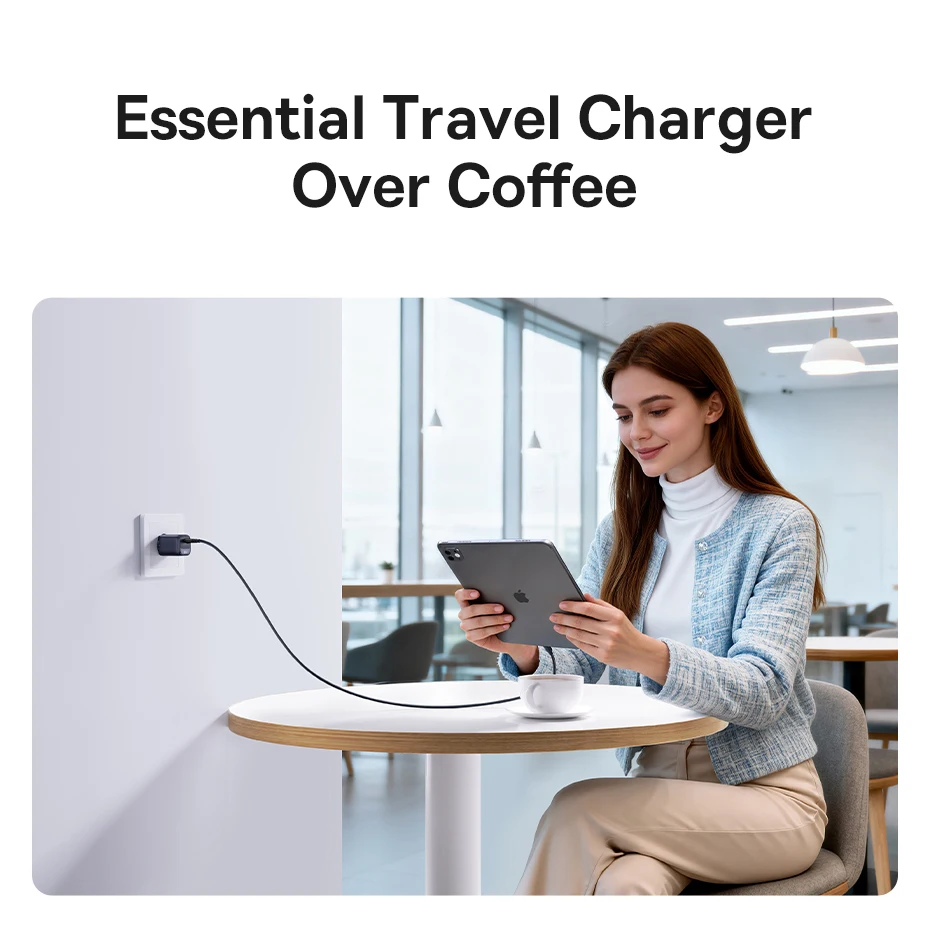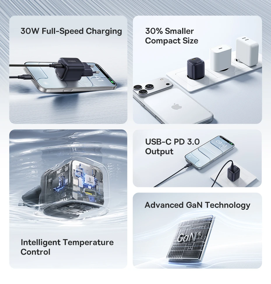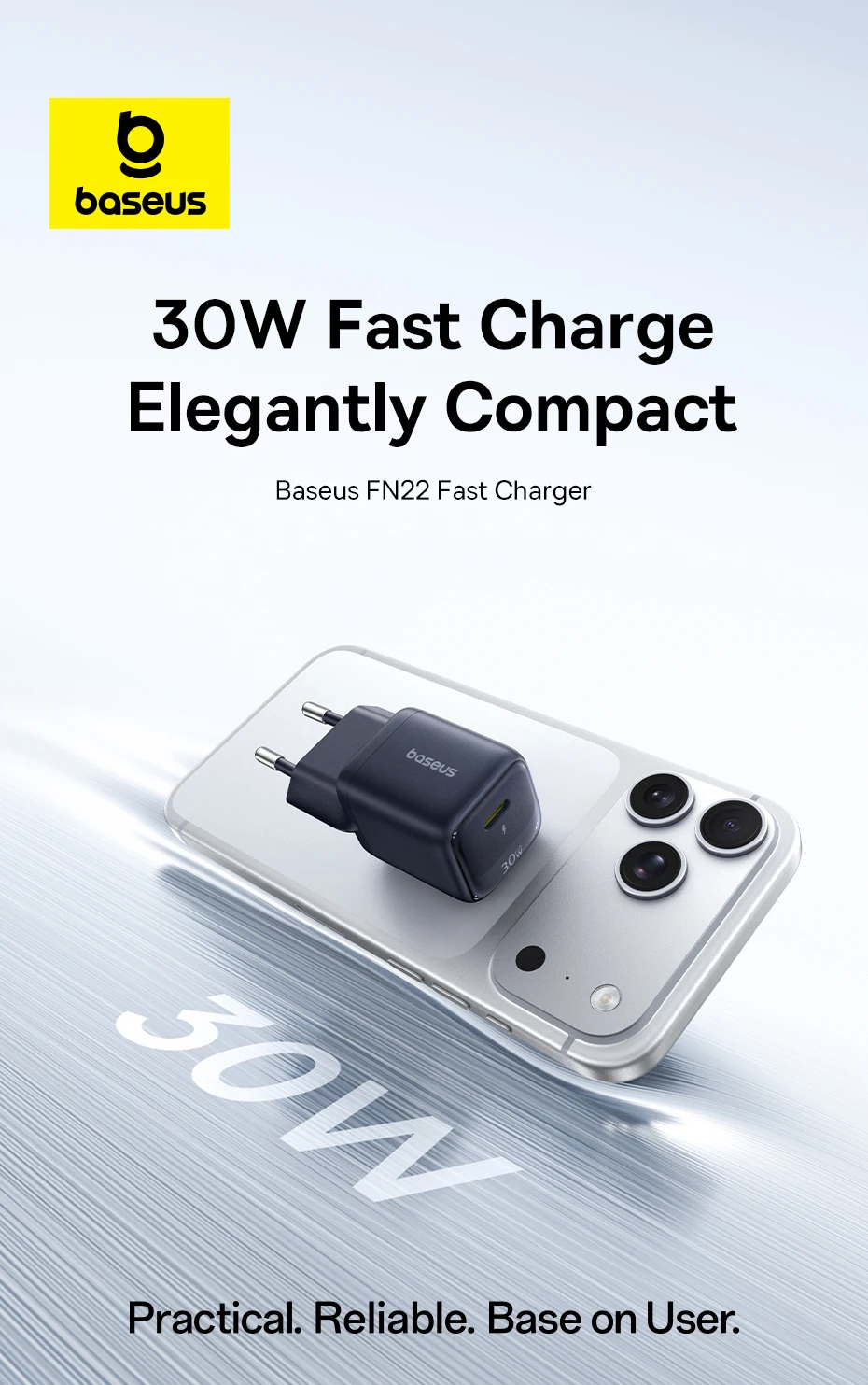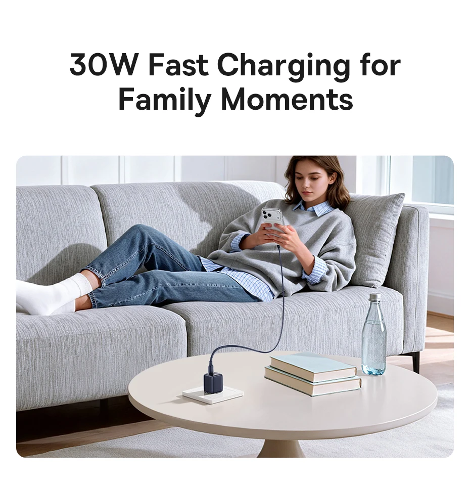 Carregador Baseus 30W GaN PD para iPhone 17 16 15 14 13 12 Max, Carregador Rápido PD3.0 QC3.0 para Celulares e Tablets Tipo C