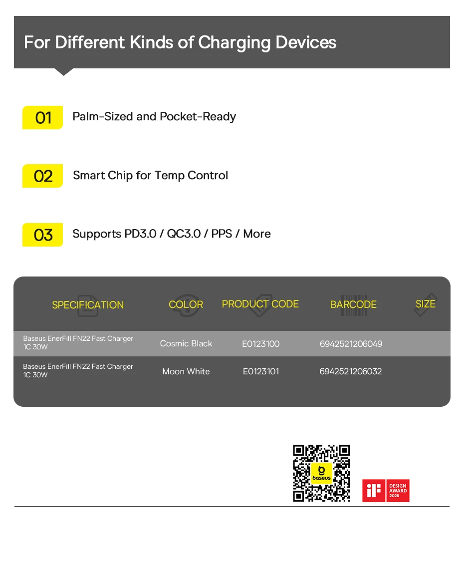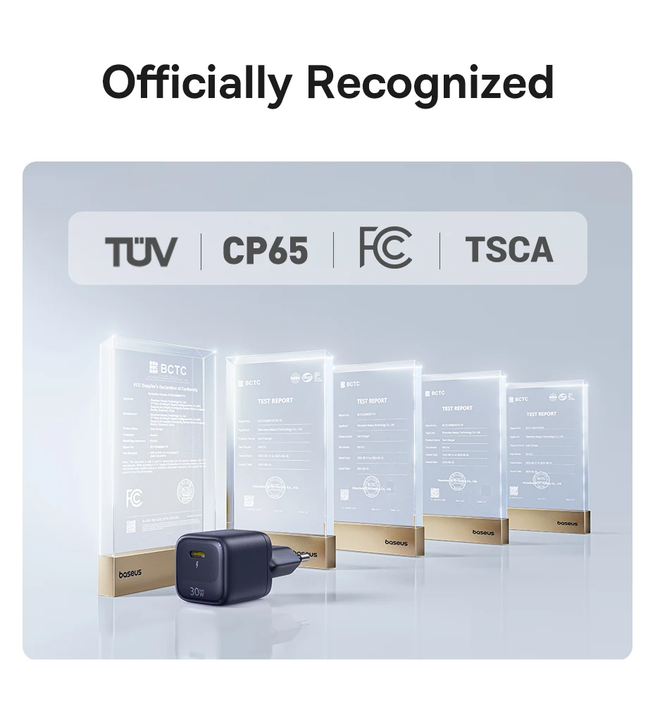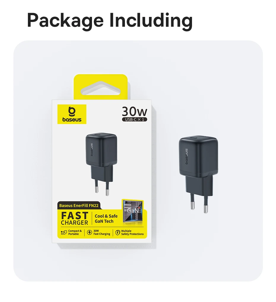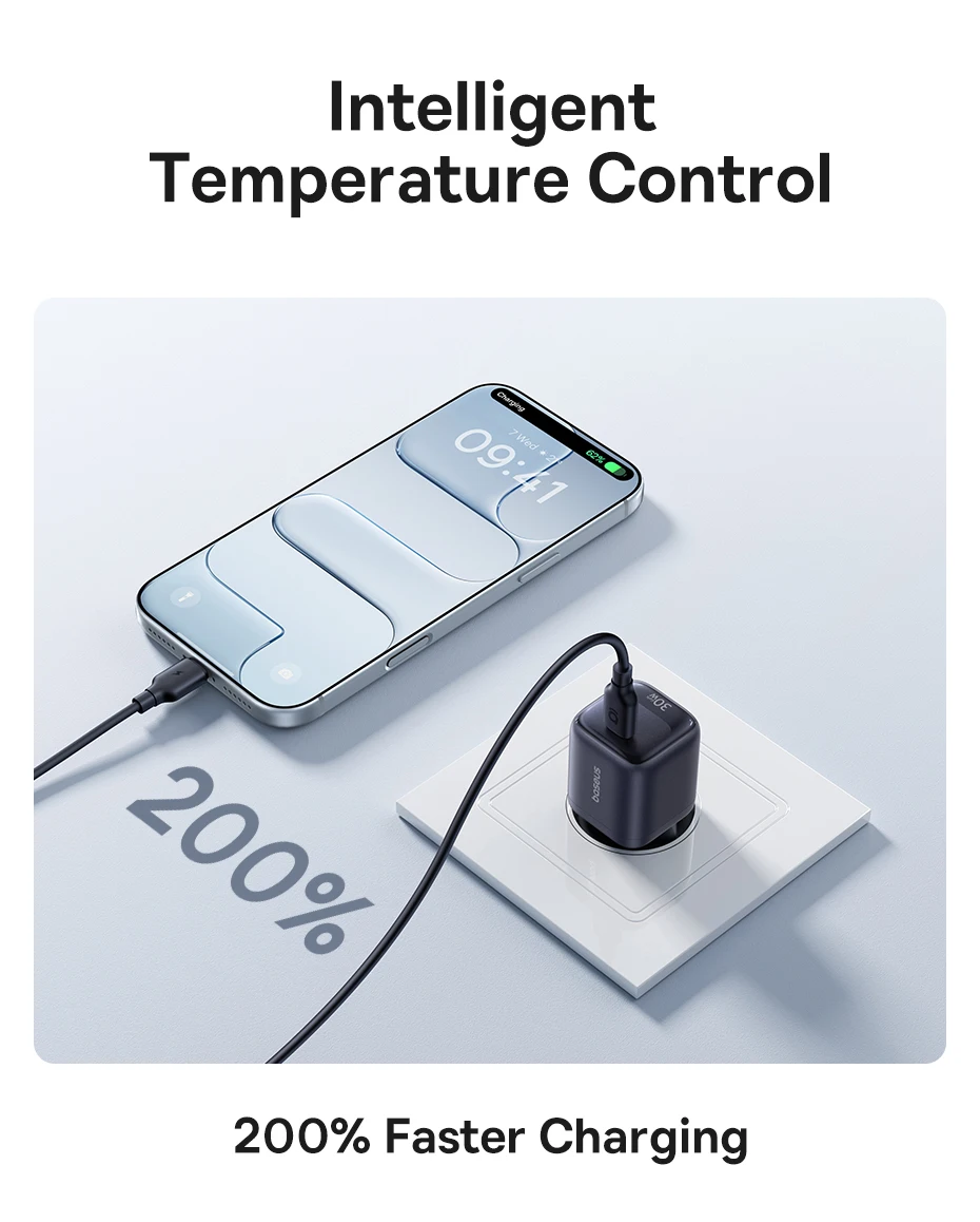 Carregador Baseus 30W GaN PD para iPhone 17 16 15 14 13 12 Max, Carregador Rápido PD3.0 QC3.0 para Celulares e Tablets Tipo C