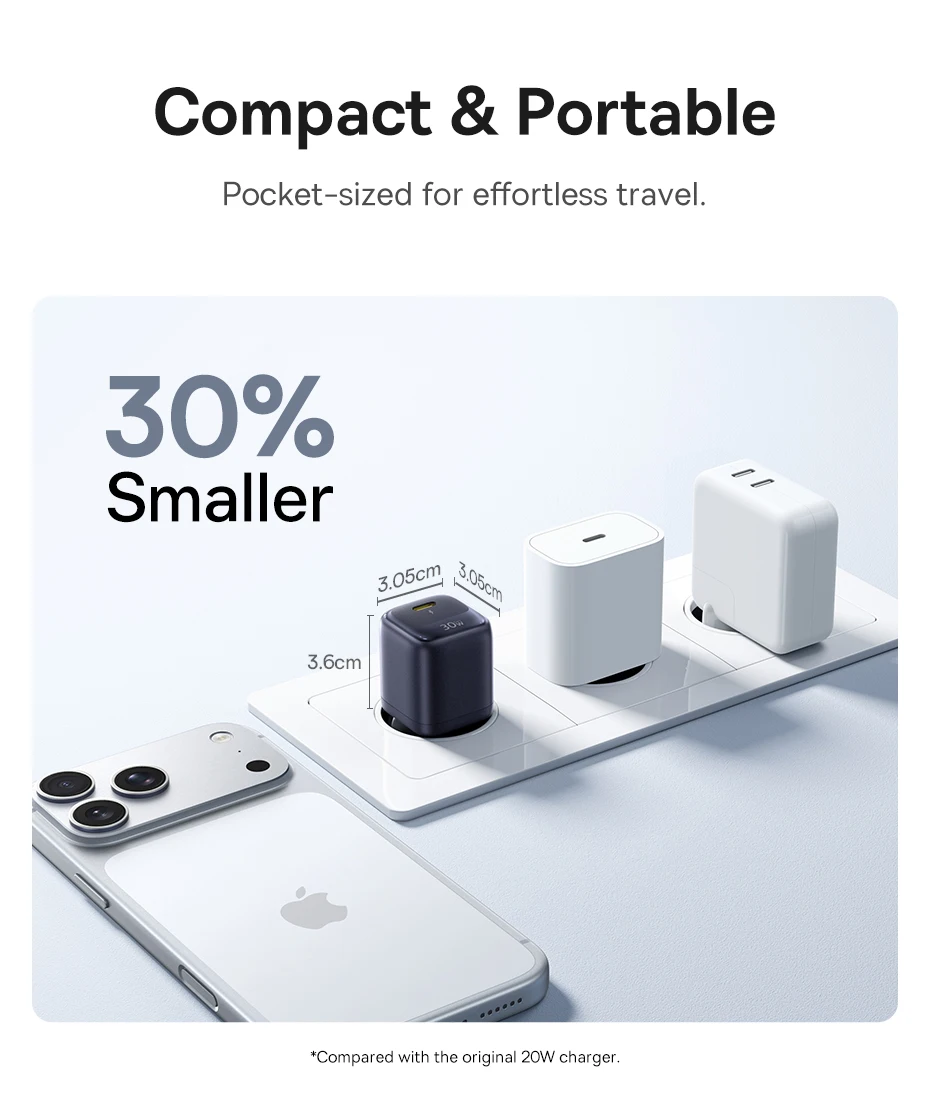 - > Carregador Baseus 30W GaN PD para iPhone 17 16 15 14 13 12 Max, Carregador Rápido PD3.0 QC3.0 para Celulares e Tablets Tipo C