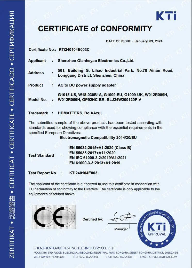 Este carregador de 15 W é uma solução ideal para substituir seu adaptador de energia quebrado ou perdido que foi incluído em seus dispositivos. O adaptador de energia está em conformidade com os padrões CE e ROHS.