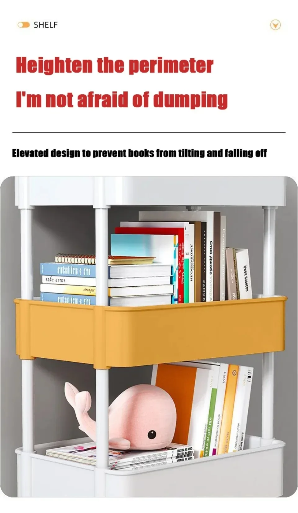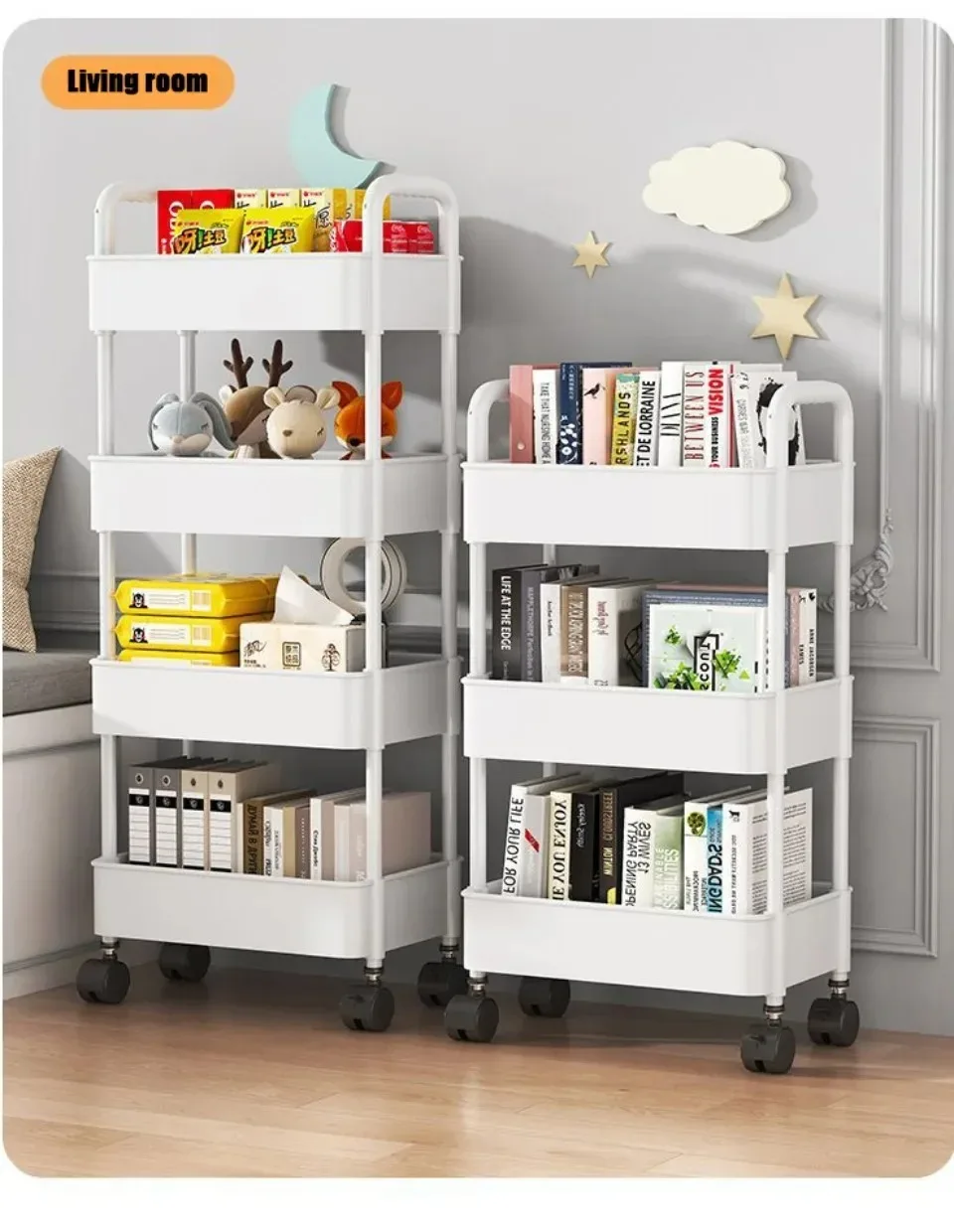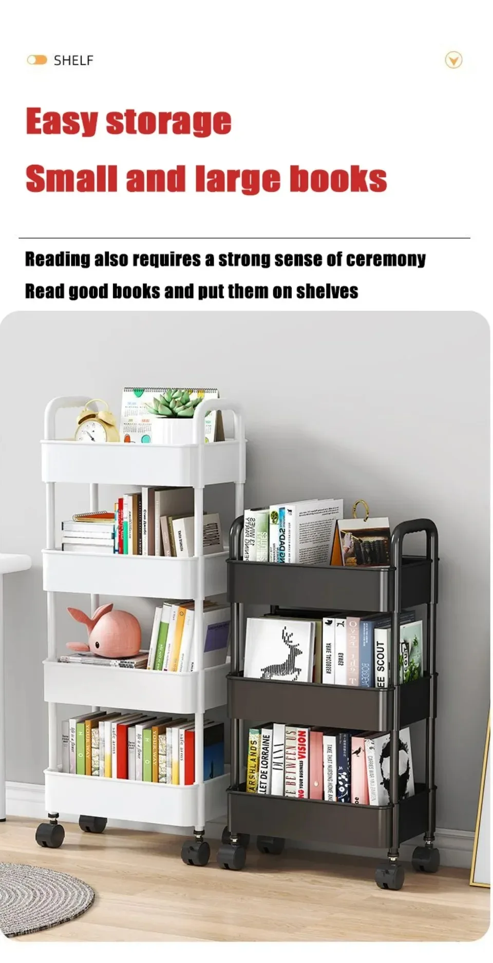 Carrinho Organizador Móvel para Livros, Cozinha e Banheiro com Rodinhas e Prateleiras Multicamadas - Ideal para Armazenar Lanches e Utensílios Domésticos.