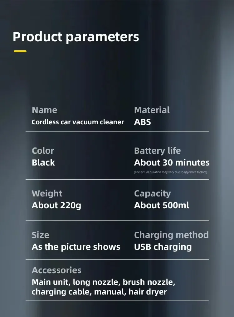 Aspirador de pó *1, acessórios *3, cabo de carregamento *1 (cor do cabo de carregamento preto e branco, combinação aleatória)