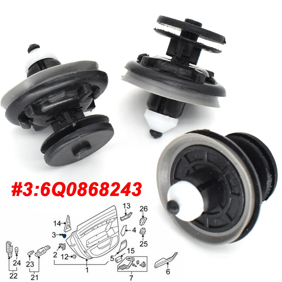 - > Cartão da porta do carro Painel de guarnição interior Clipes Rebites 6Q 0868243 Para VW Touran Tiguan Golf 5 6 Passat Jetta CC Polo Caddy Audi TT Mk2