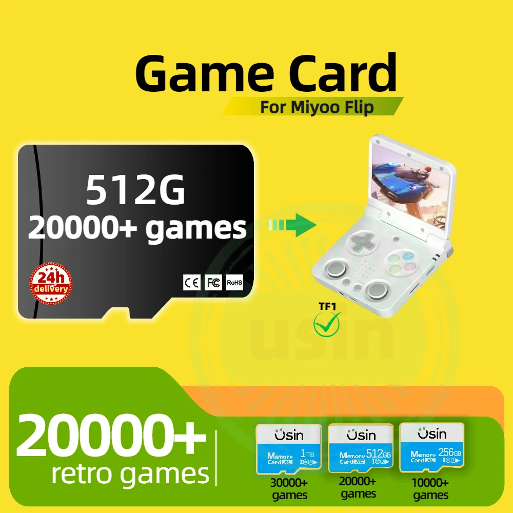 - > Cartão de jogo para miyoo flip 30000 + jogos clássicos retrô ps1 psp console de jogos portátil memória de jogos tf sd h-speed 1tb 512g 256g