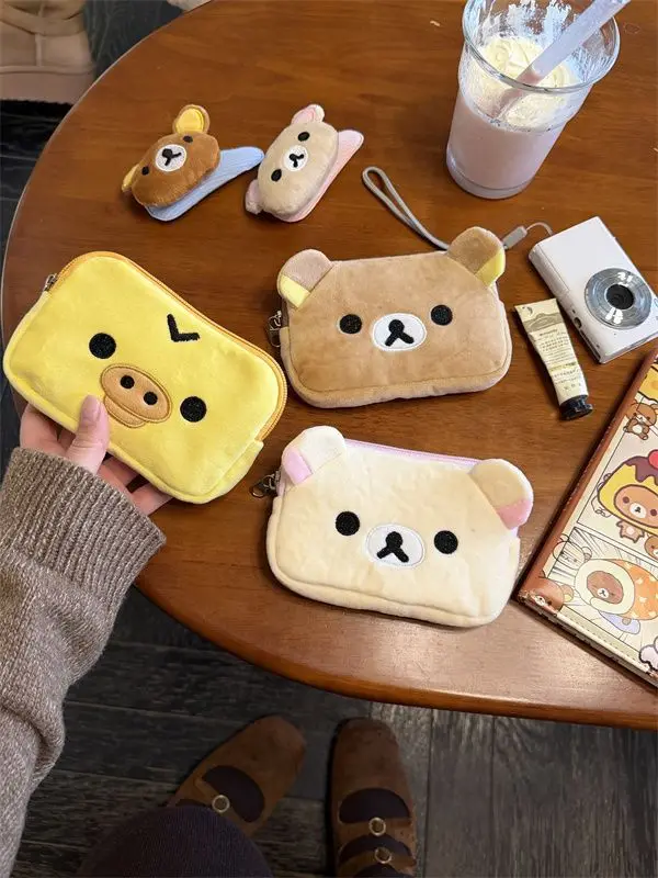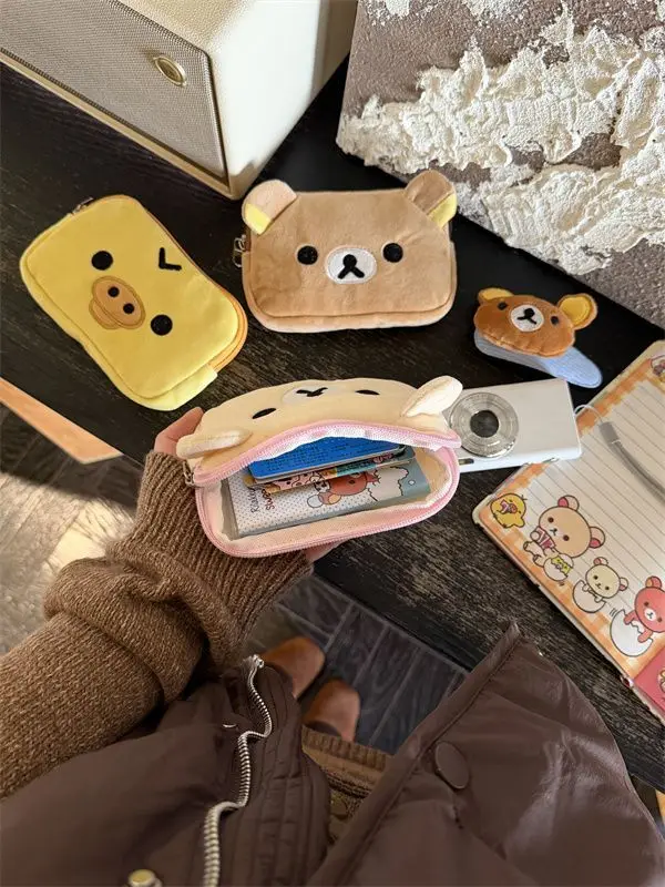 Carteira de Moedas Rilakkuma Kawaii de Desenho Animado, Bolsa Criativa para Cartões Korilakkuma, Acessório de Armazenamento de Cartões, Presente de Aniversário para Casais