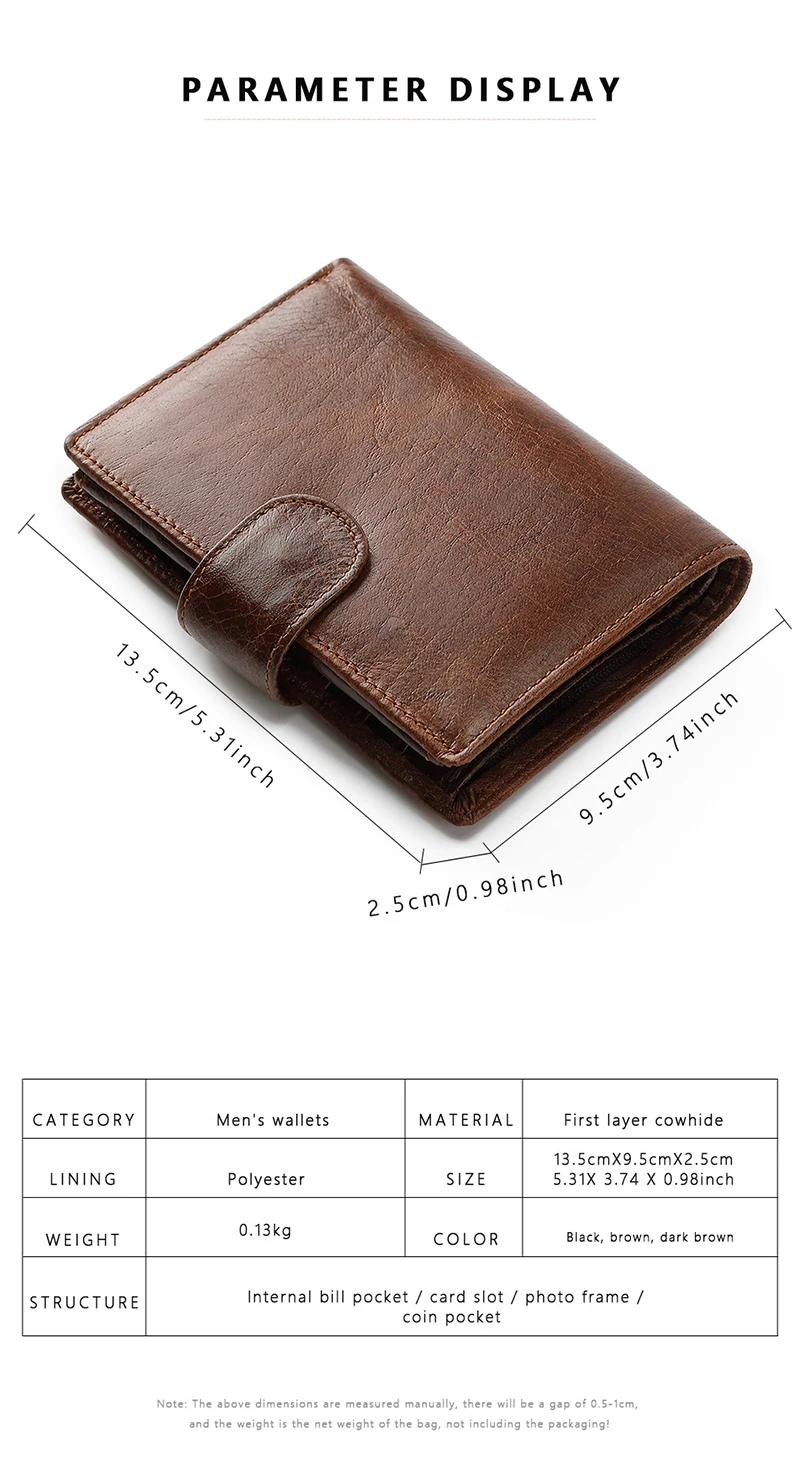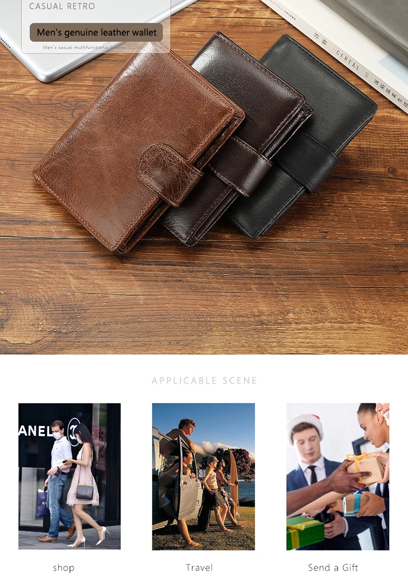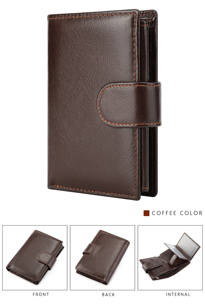 - > Carteira retrô masculina de couro legítimo, novos porta-cartões curtos, camada superior de couro de vaca, bolsa para moedas, bolso de couro com zíper, clipes de dinheiro