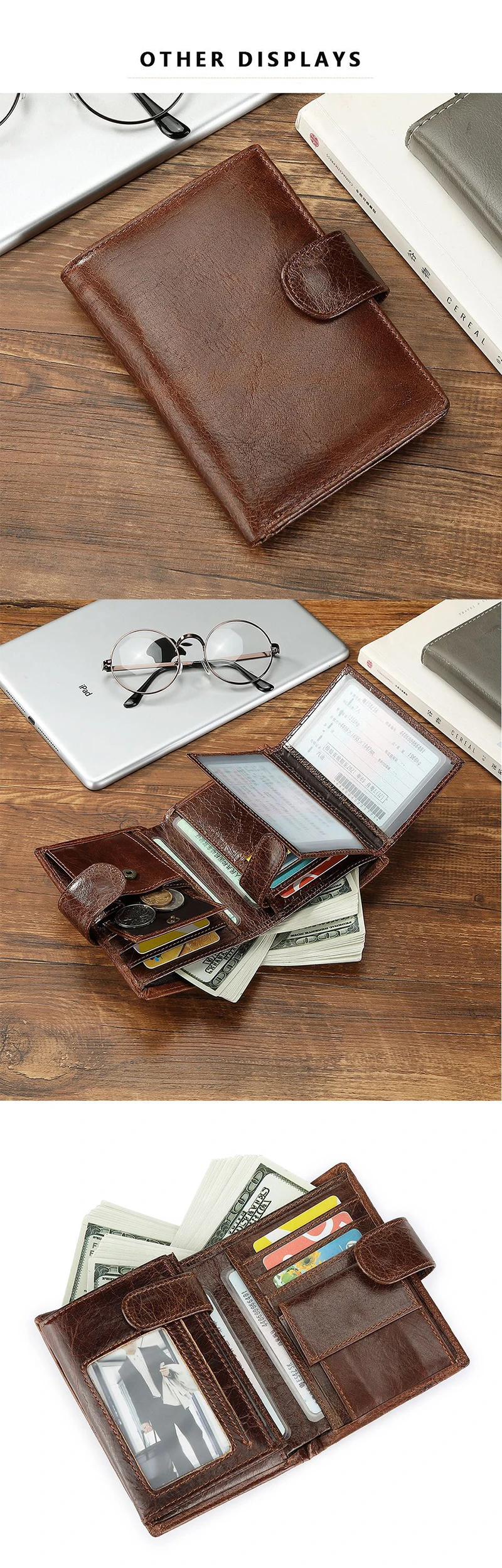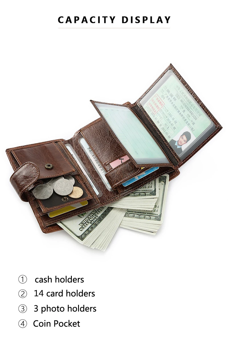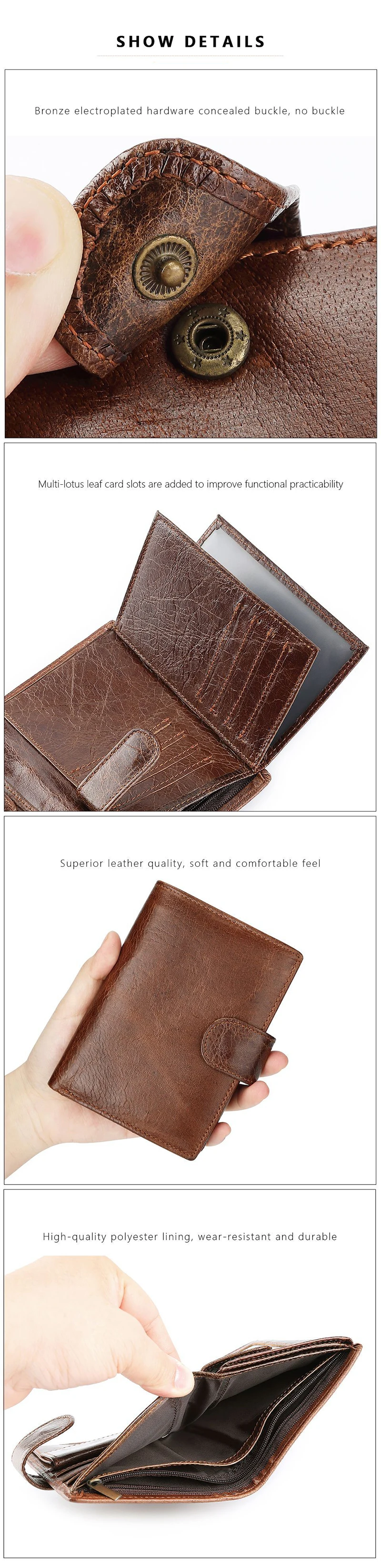 - > Carteira retrô masculina de couro legítimo, novos porta-cartões curtos, camada superior de couro de vaca, bolsa para moedas, bolso de couro com zíper, clipes de dinheiro