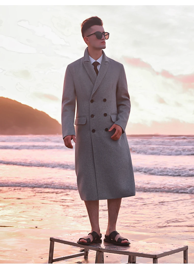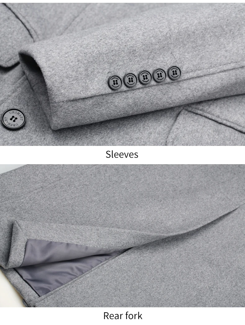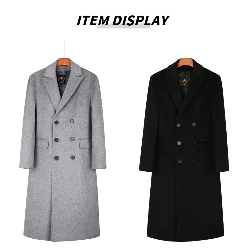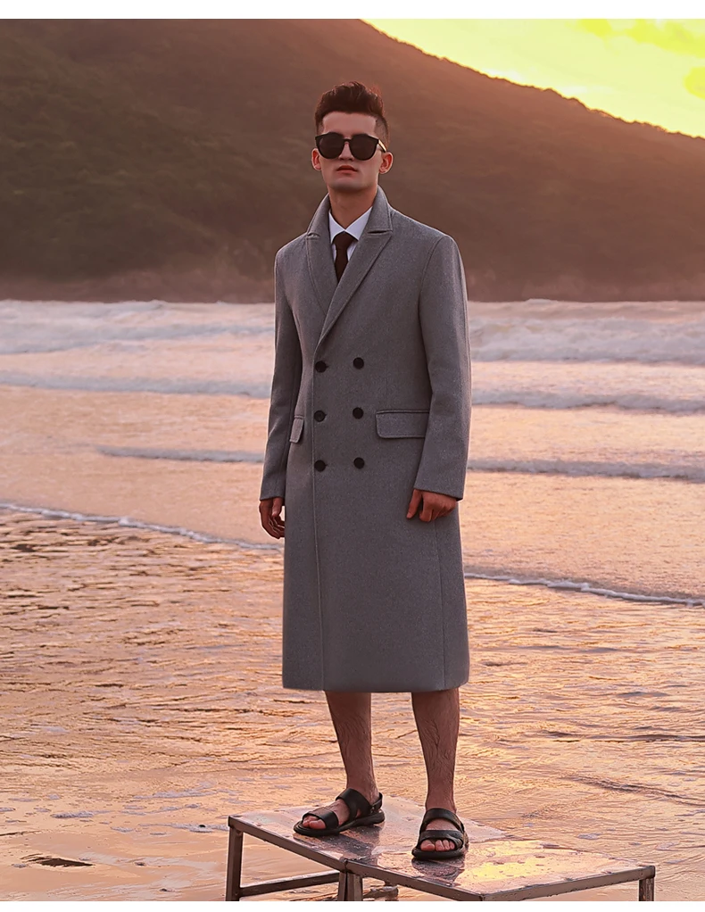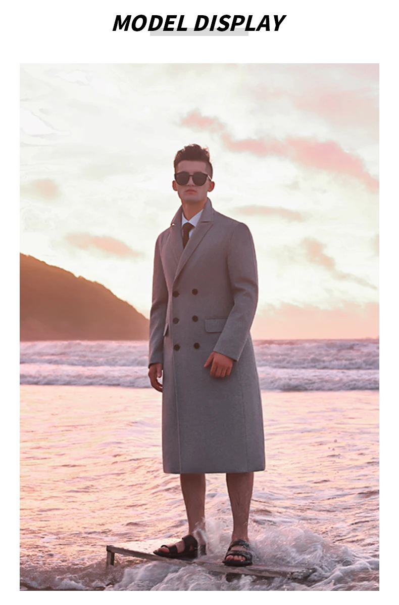 - > Casaco de lã masculino duplo breasted na altura do joelho engrossado destacável forro viagem de negócios casaco de tweed masculino