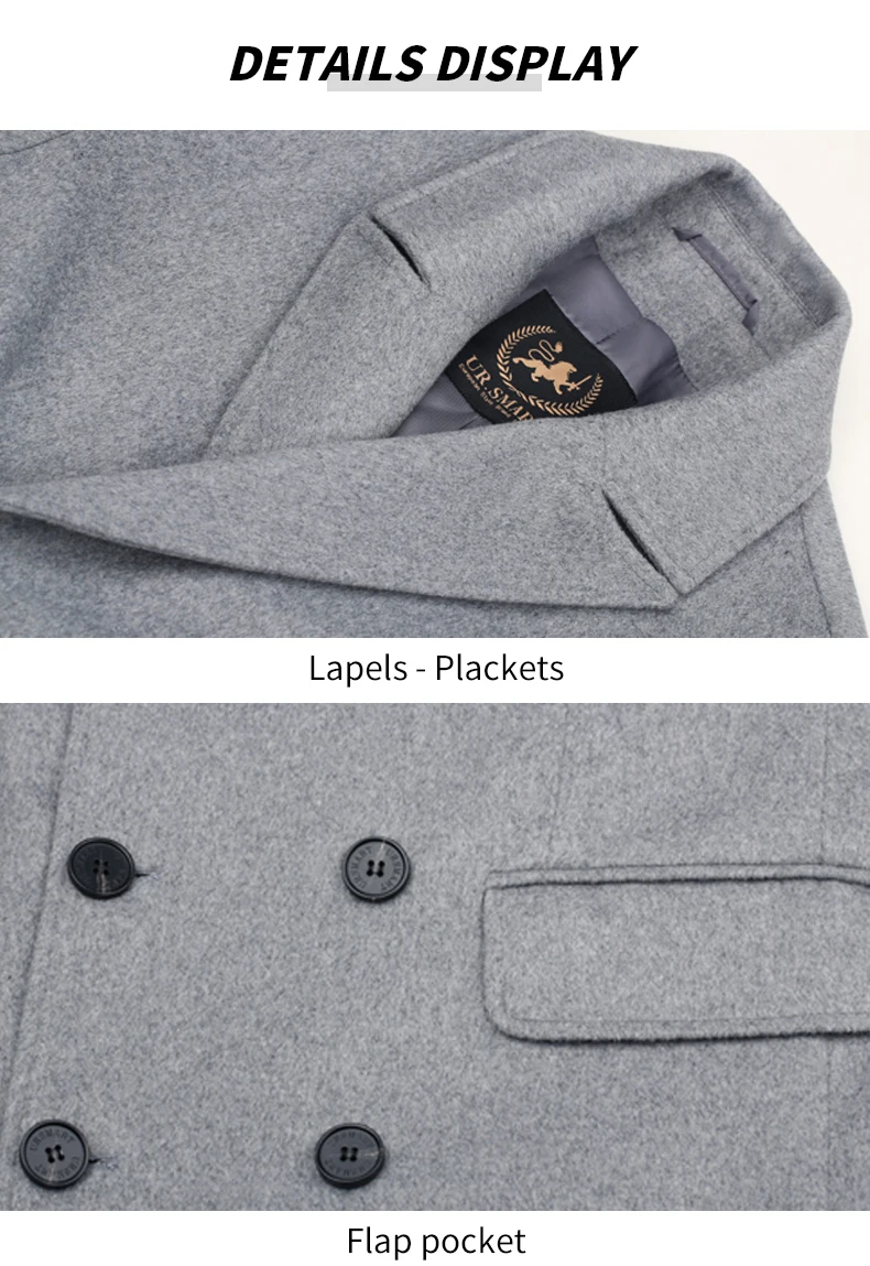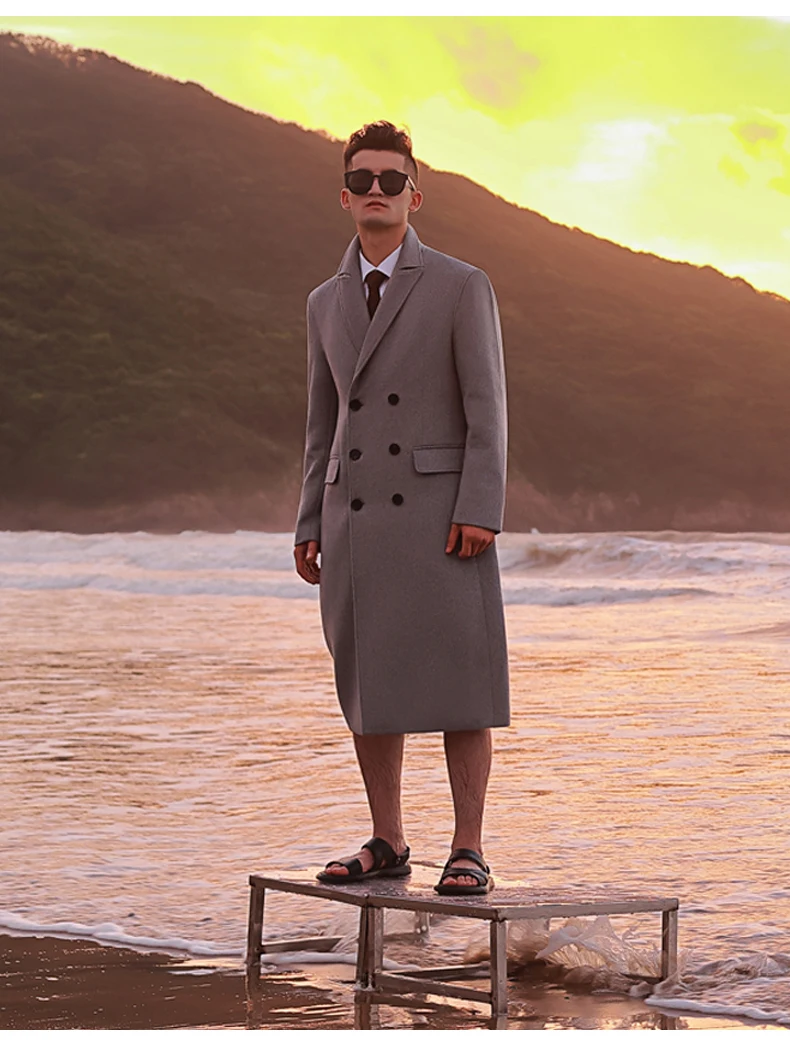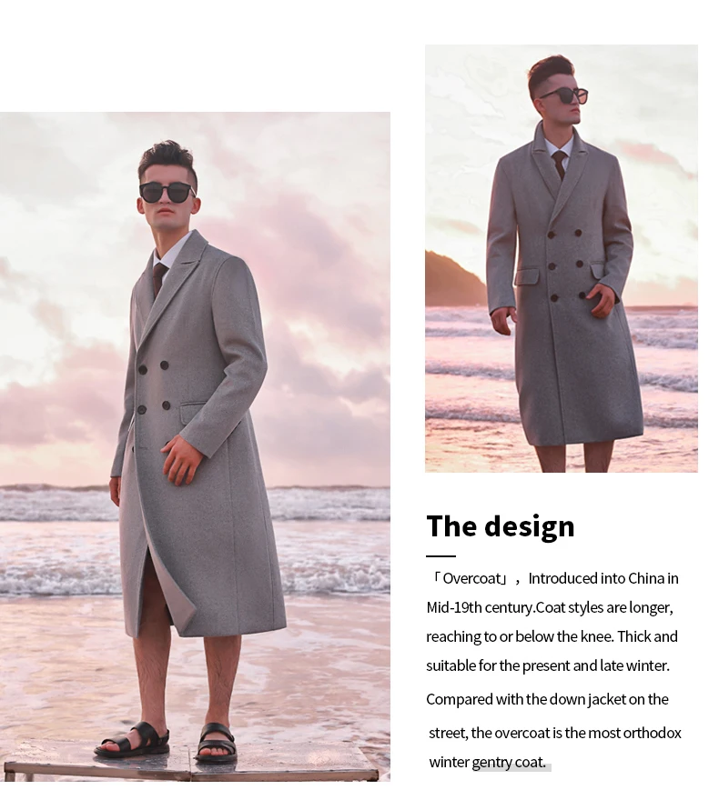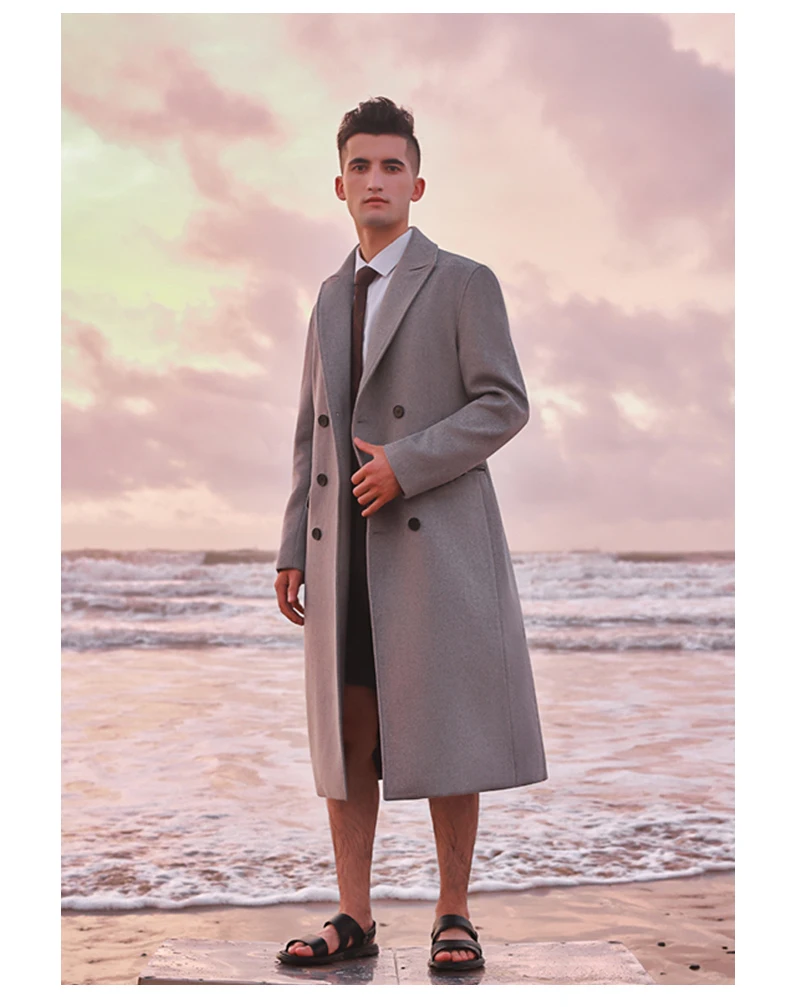 - > Casaco de lã masculino duplo breasted na altura do joelho engrossado destacável forro viagem de negócios casaco de tweed masculino