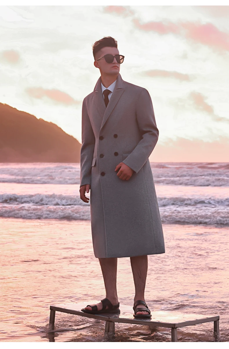 Casaco de lã masculino duplo breasted na altura do joelho engrossado destacável forro viagem de negócios casaco de tweed masculino
