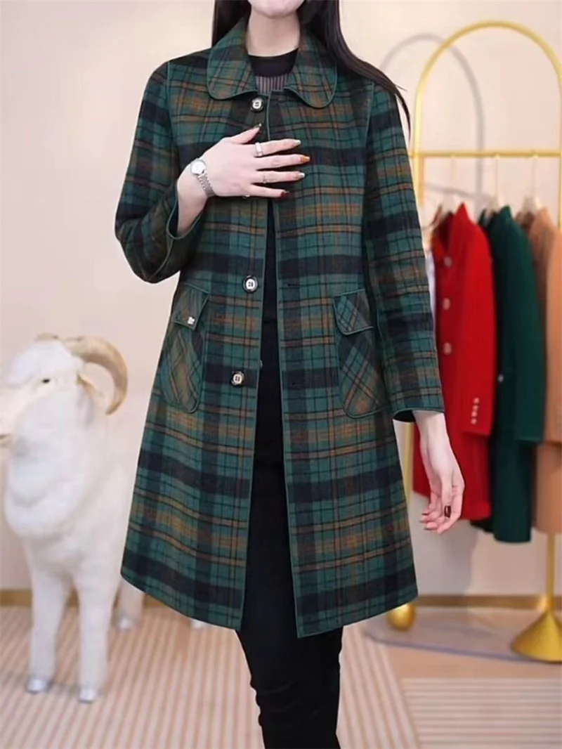 Número do modelo: Plaid Wool Coat Thick Velvet Thick