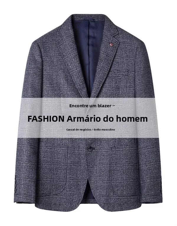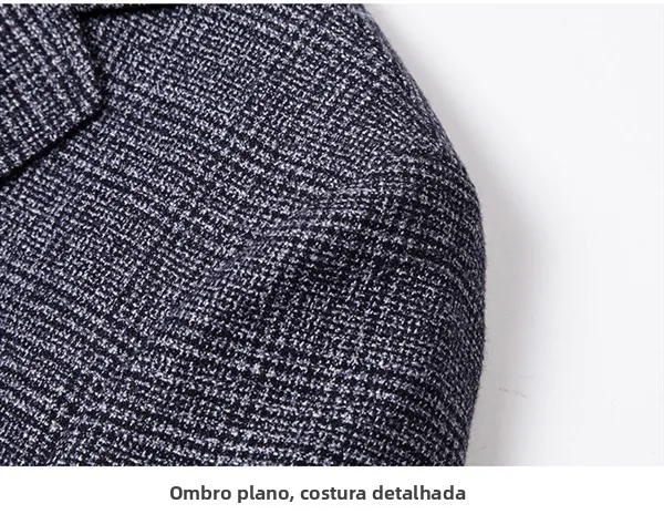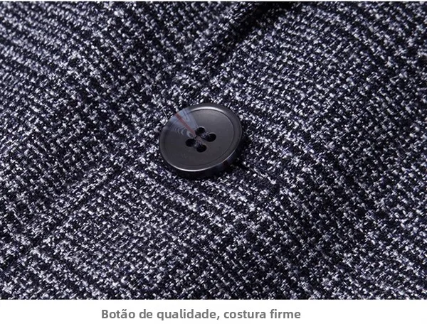 - > Casaco Masculino Hai Brand com Textura Xadrez, Estilo Casual, Gola a, Abotoamento Simples, Corte Regular, para Outono Inverno