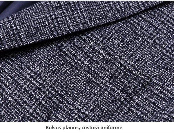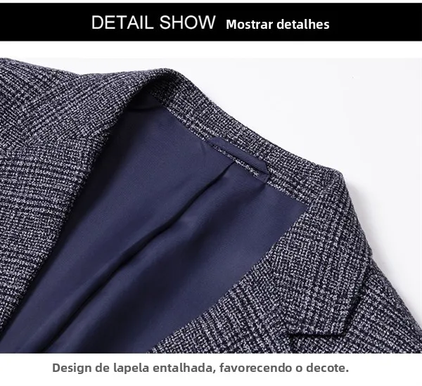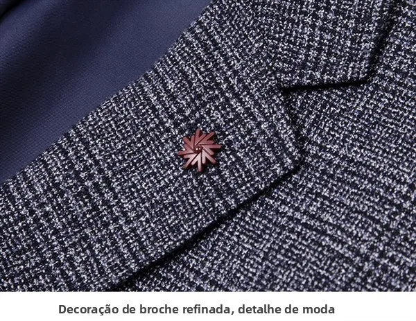 Este terno apresenta um design de moda moderno, com um padrão de tweed e um colarinho de chale, perfeito para o outono e inverno.