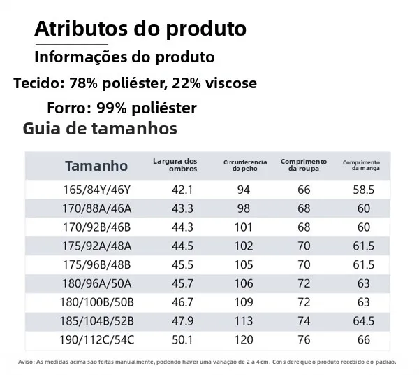 Com um corte especial de largura, este terno oferece um ajuste confortável e elegante, destacando a silhueta do usuário.