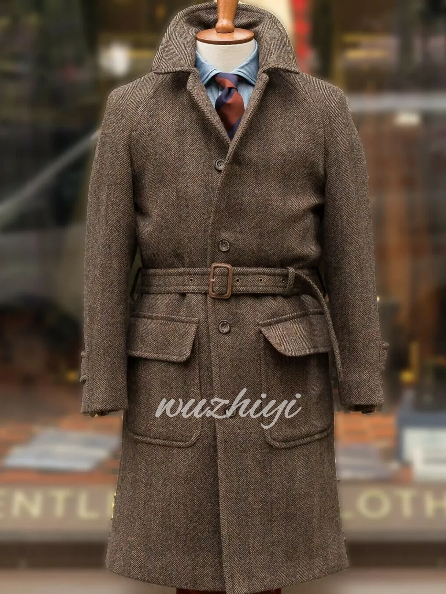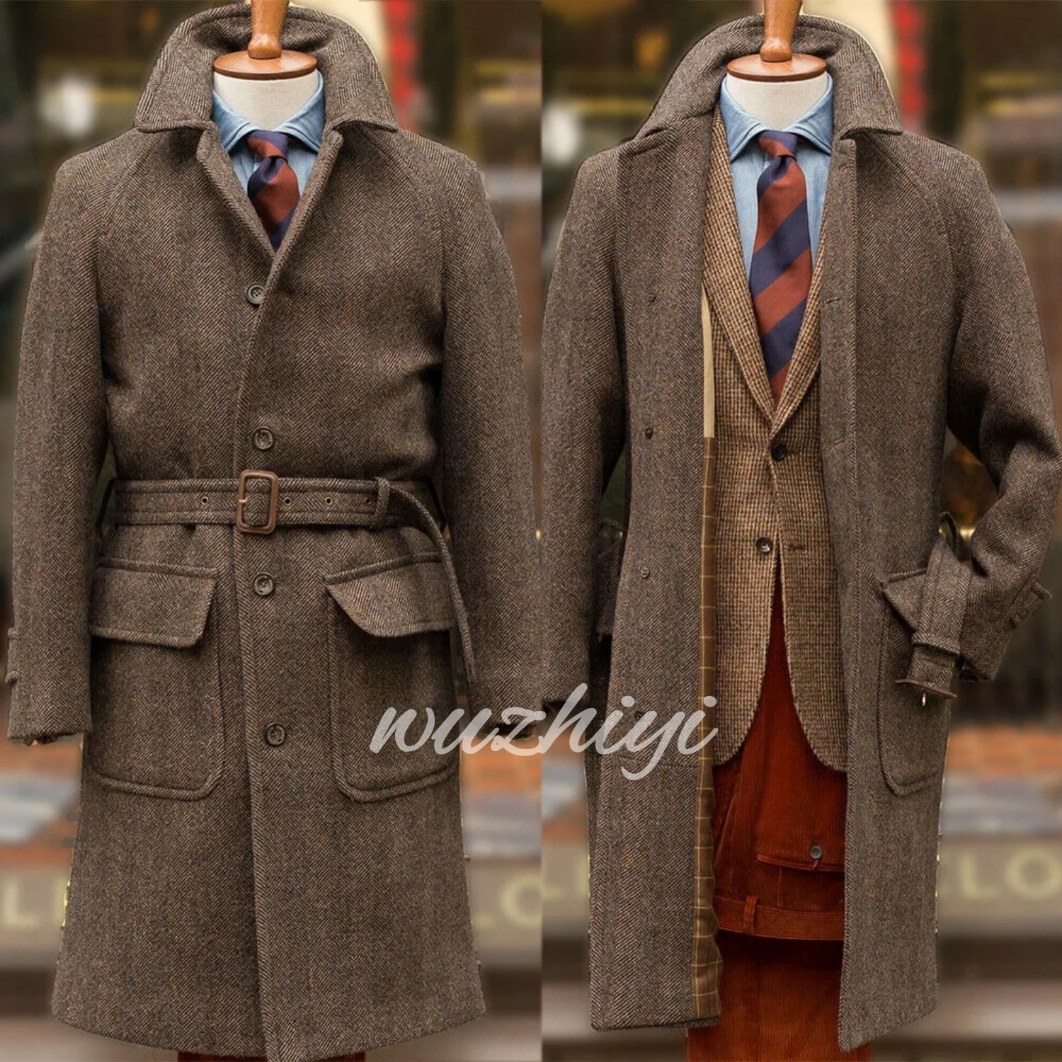- > Casacos masculinos de alta qualidade negócios casual moda espinha de peixe longo trench masculino estilo inglaterra misturas casaco outono inverno personalizado