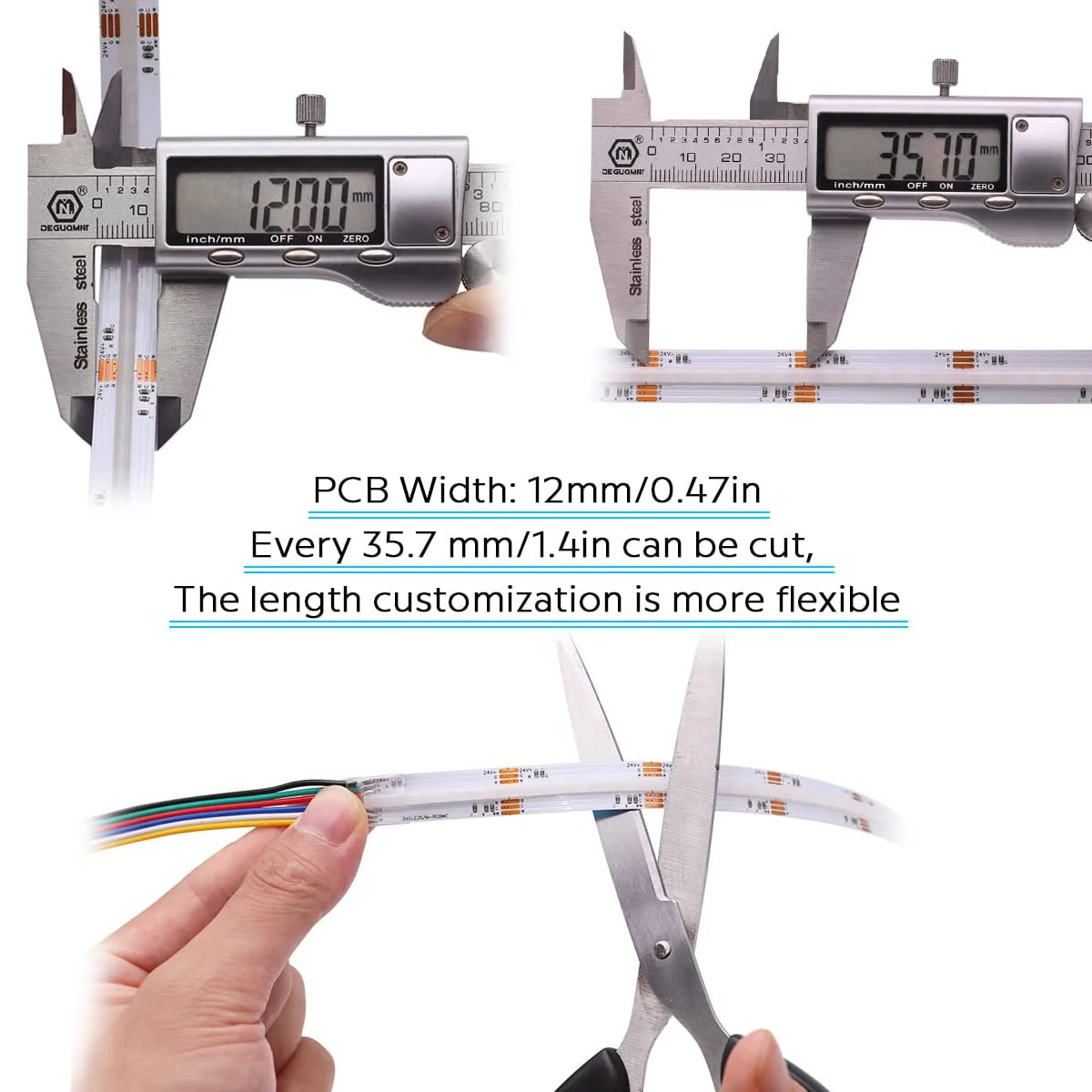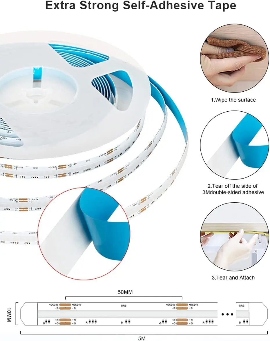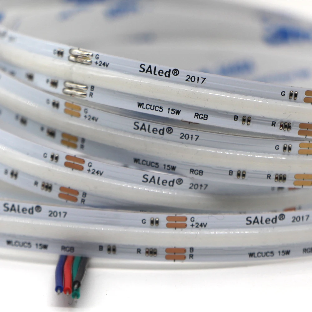 - > Cct rgb rgbw rgbcct cob led luz de tira alta densidade flex fcob led fita regulável fob fita linear dc12v 24v 5m/rolo