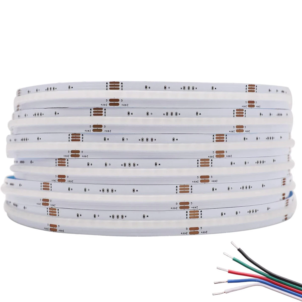 CCT RGB RGBW RGBCCT COB LED Strip Light High Density Flex FCOB LED Tape Light Dimmable FOB Linear Ribbon DC12V 24V 5M/Roll