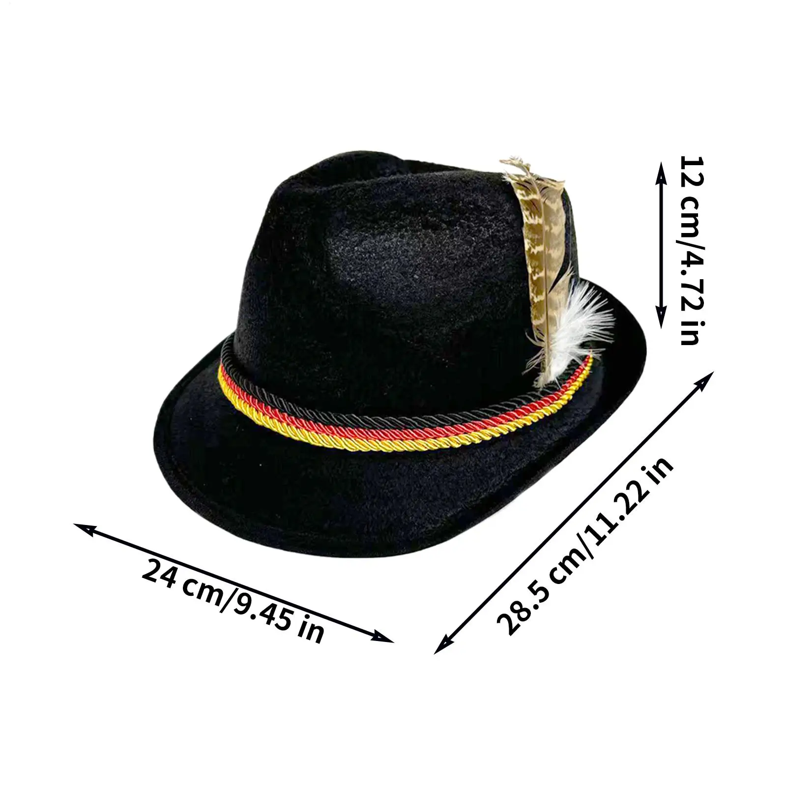 O chapéu alpino alemão é confeccionado com materiais não tecidos, oferecendo uma opção de touca confortável e elegante para adultos.Projetado para ser unissex, este acessório versátil se adapta a várias ocasiões, como festas, Halloween, Mardi Gras, eventos culturais, festivais de cerveja, celebrações de feriados, cosplay e temas de fantasias.