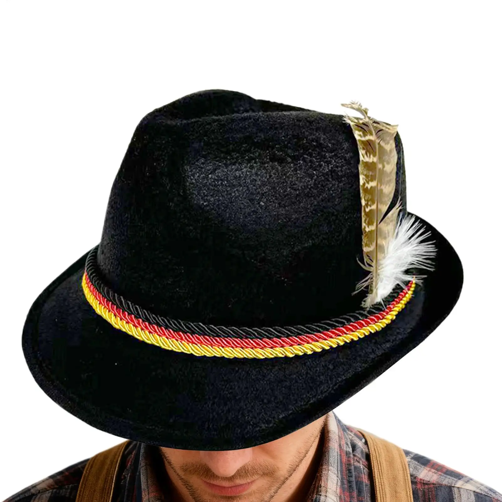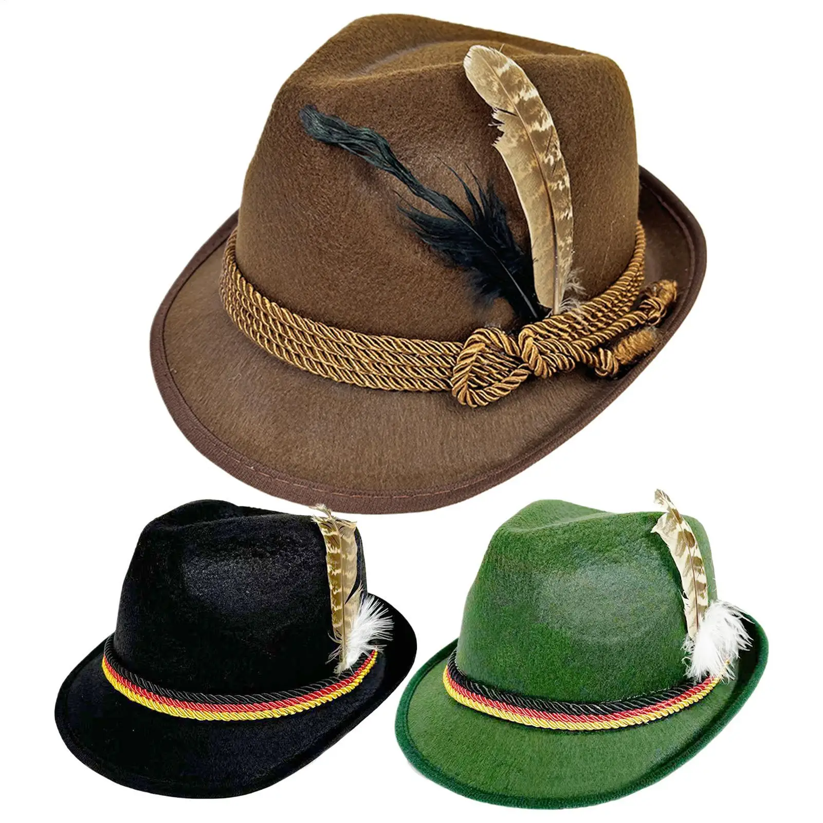 Chapéu Oktoberfest Alemão Unissex, Acessório de Cabeça Bávaro, Chapéu Jazz Fantasia com Penas para Adultos, Festa, Festival de Cerveja e Feriados.