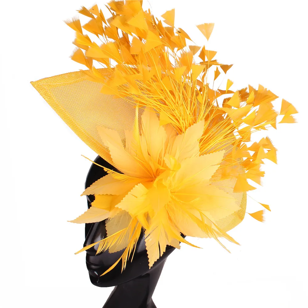 Chapéu Fascinator com clipes para mulher, azul royal, lindo, plumas extravagantes, chapéus de casamento, acessórios para noiva, lady millinery, elegante
