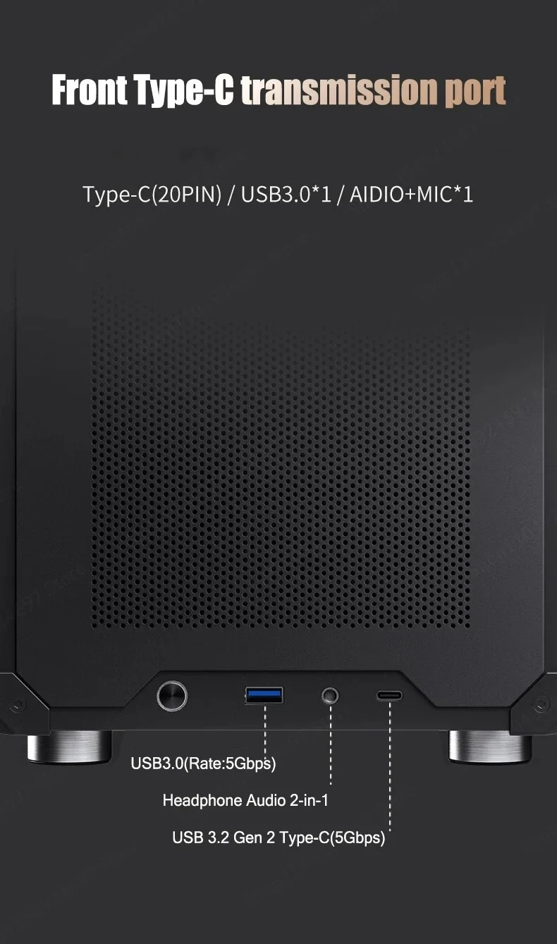 Portas frontais: Type-C(20PIN)/USB3.0*1/AUDIO*1+MIC*1
