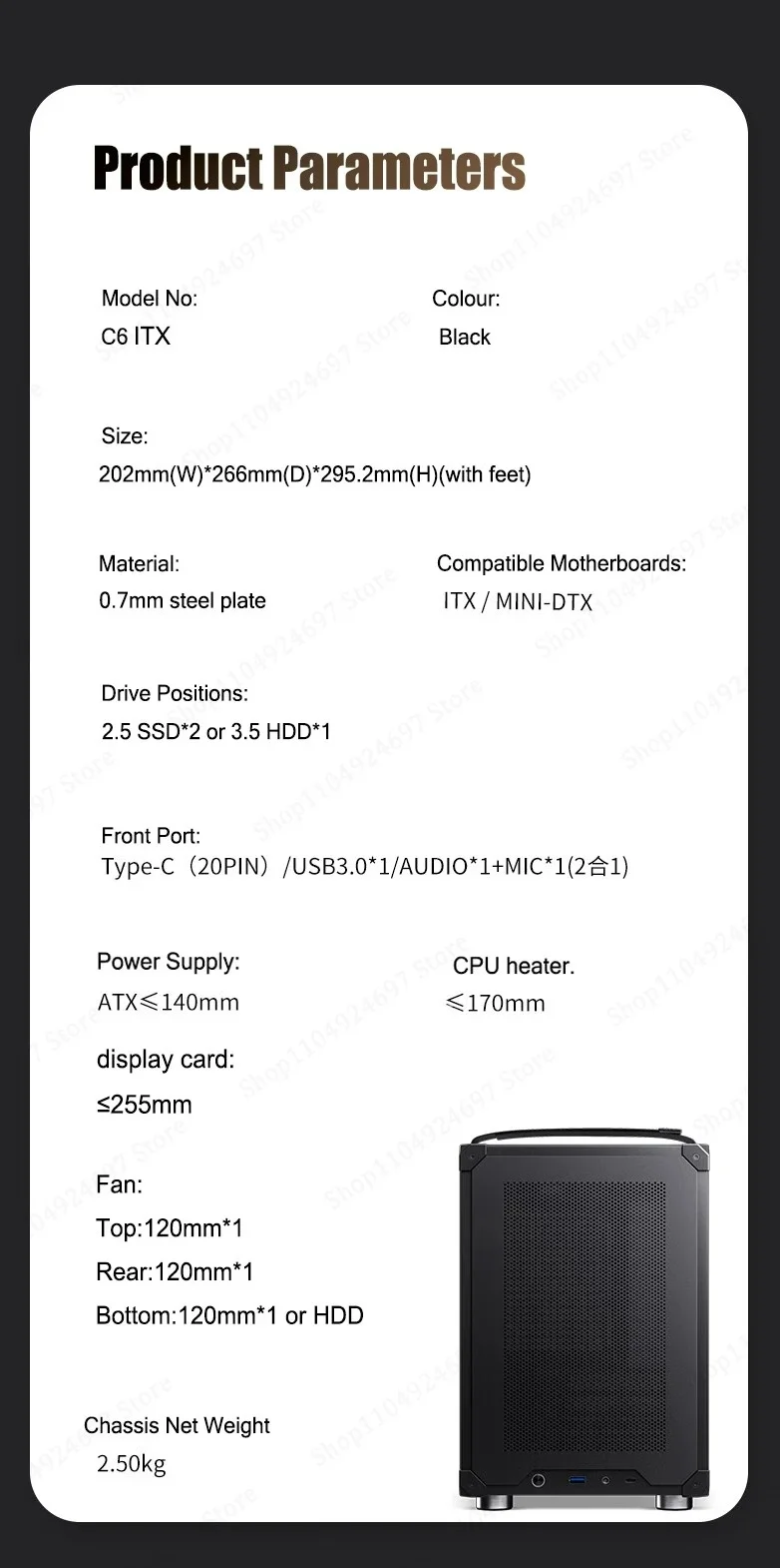 - > Chassi Mini ITX JONSBO C6 Preto com Painel MESH em Quatro Lados, 3 Posições para Ventiladores, Fonte ATX, Radiador de 170mm, Chassi de Computador Branco