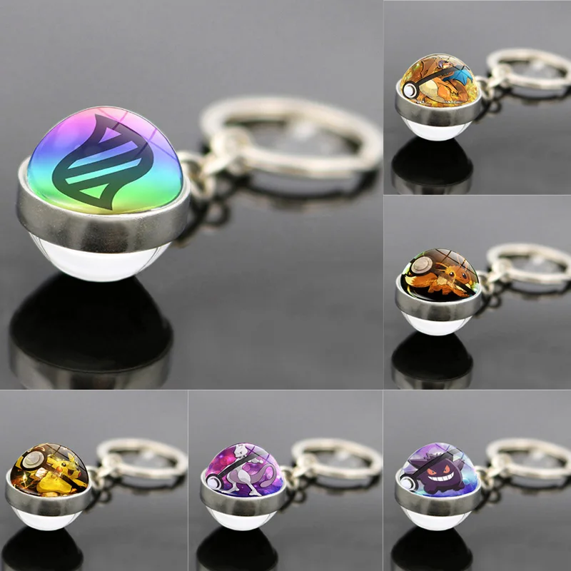 - > Chaveiros de Vidro Anime Pokémon: Acessórios de Desenho Animado com Pikachu, Eevee e Charizard – Bonecos de Ação Colecionáveis e Presentes