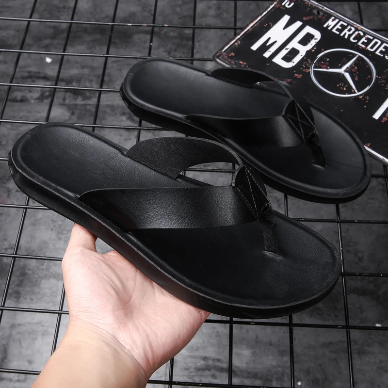 - > Chinelos de couro italiano masculino, sapatos casuais, chinelos de hotel, flats leves, luxo, praia, verão, tamanho 38-47, novo