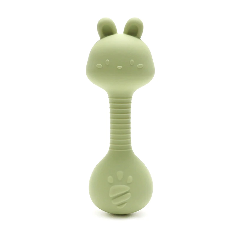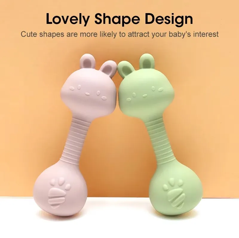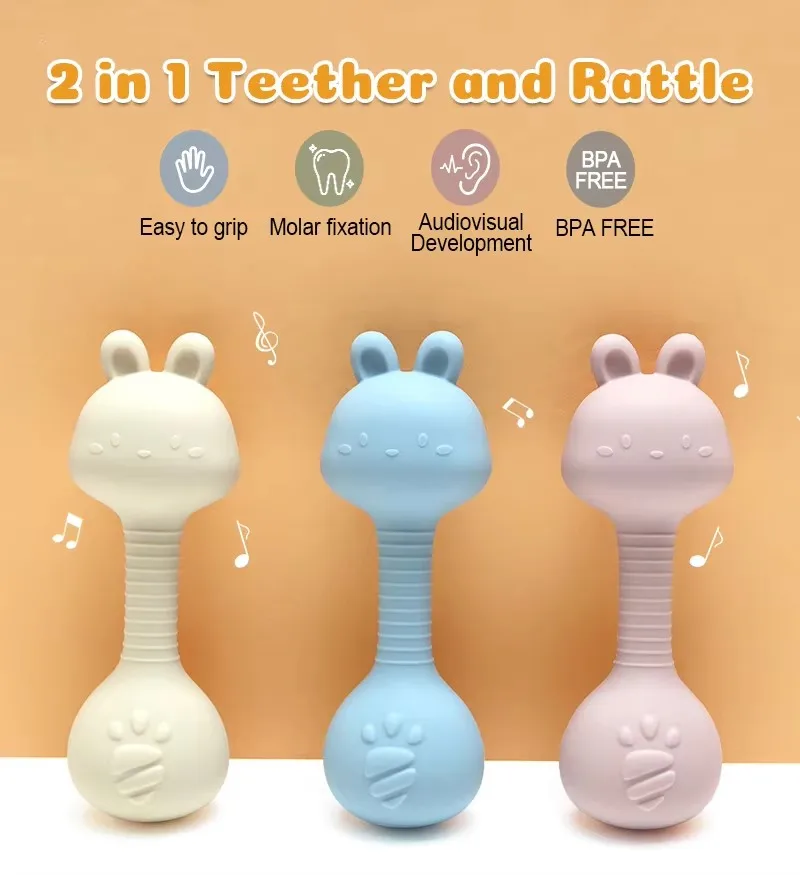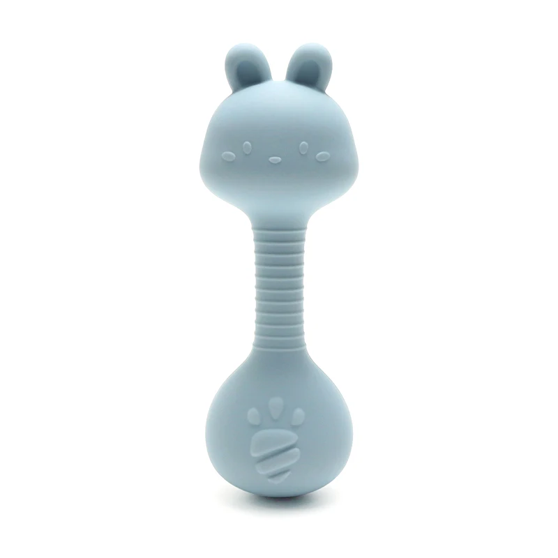 - > Chocalho de silicone para bebês, brinquedos fáceis de segurar, presente para recém-nascidos, coelho fofo, martelo de areia, chocalhos, brinquedo de dentição para bebês, coisas sem bpa