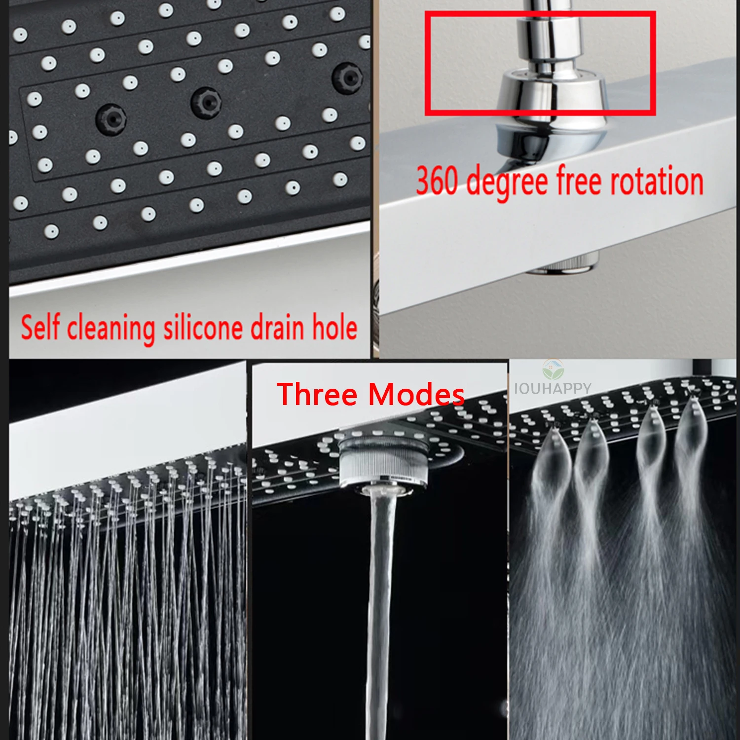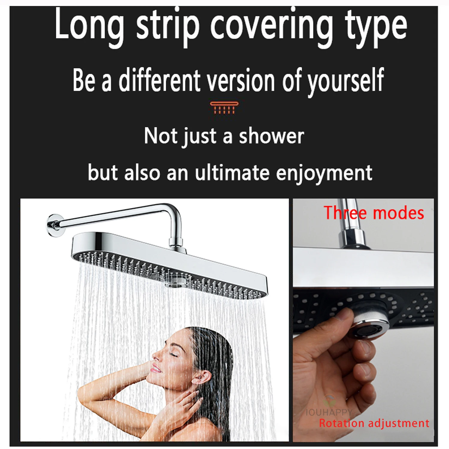 Chuveiro de chuva superior de 480mm, 3 modos, supercarga ajustável, spray de alta pressão, chuveiro para acessórios de banheiro